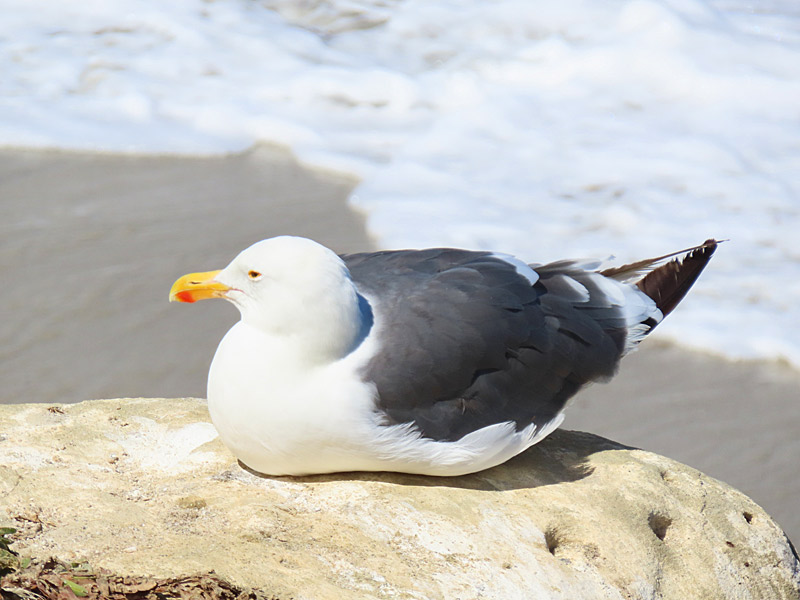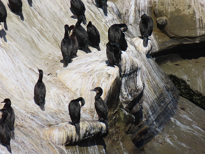 The black birds are the Brandt’s Cormorant. The most common seagulls are the Western Gull.