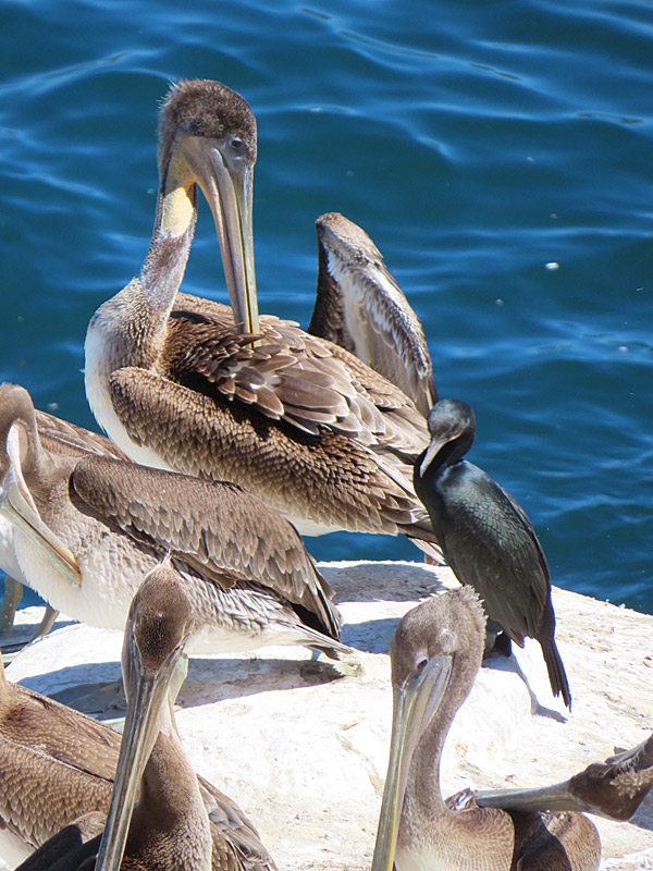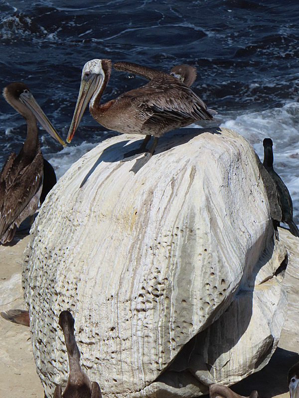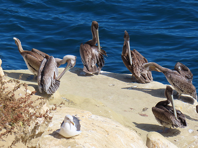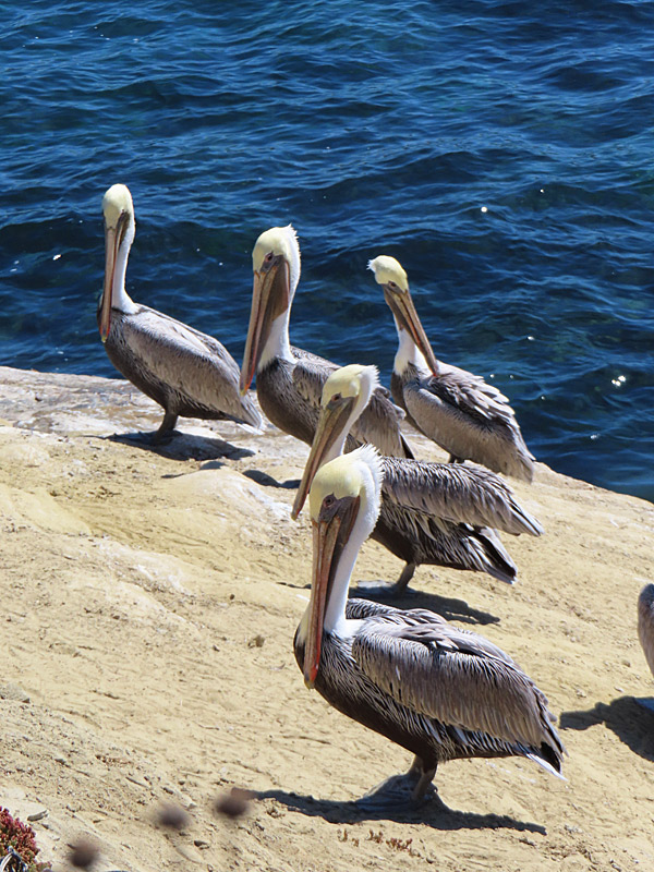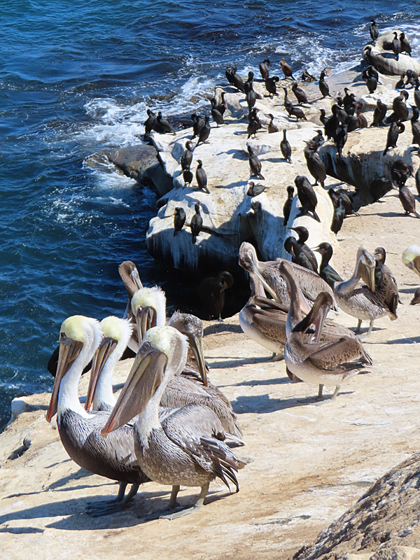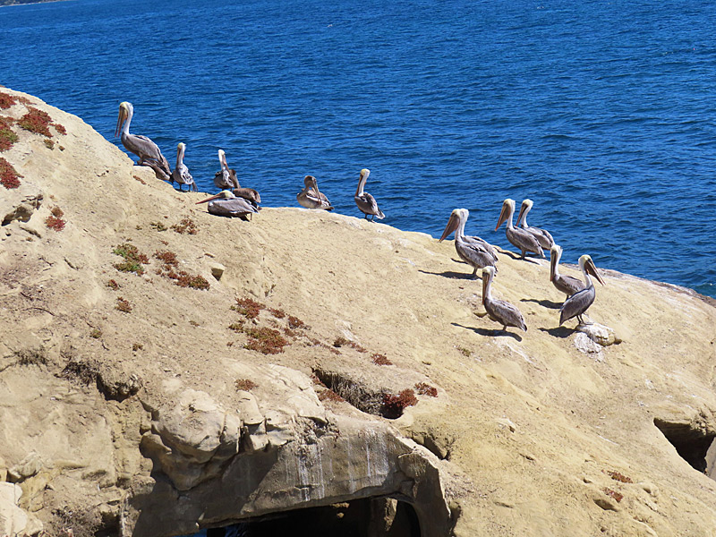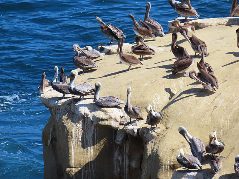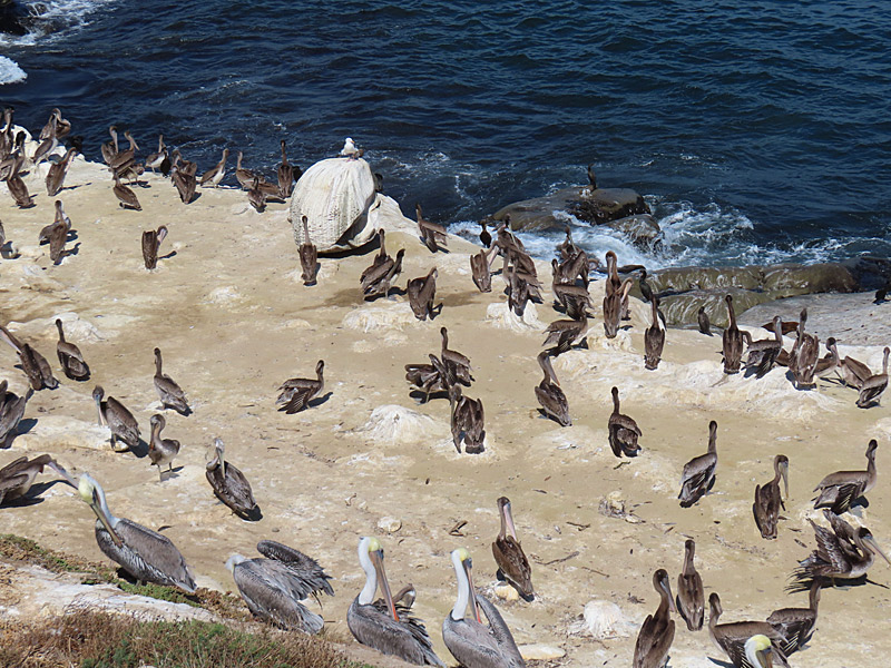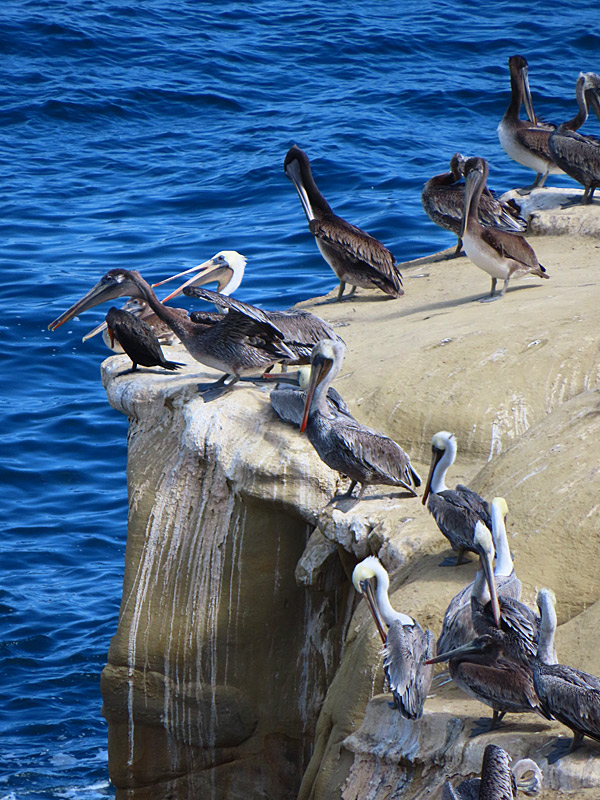 According to Google, La Jolla Cove in San Diego is a regular hangout for California Brown Pelicans. At one time these were endangered, but not anymore.