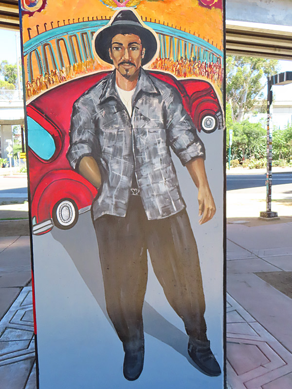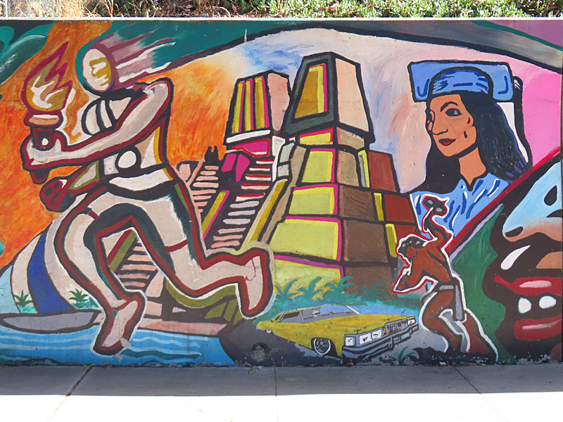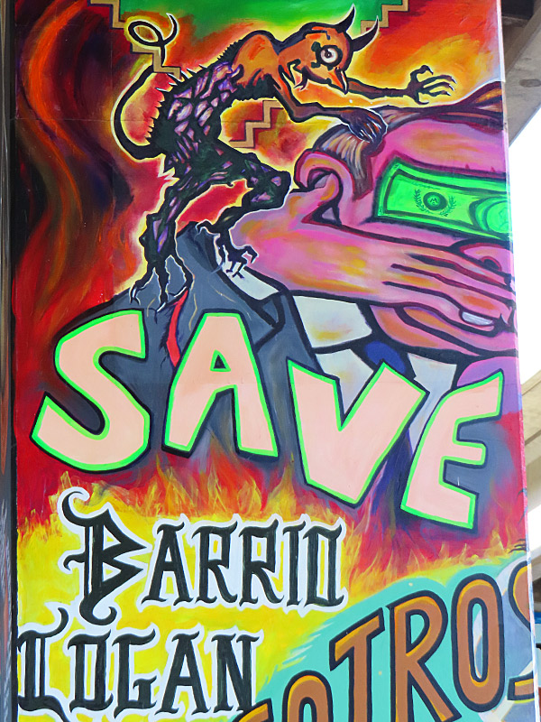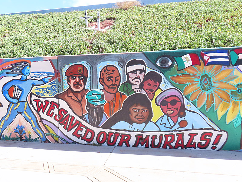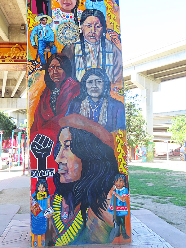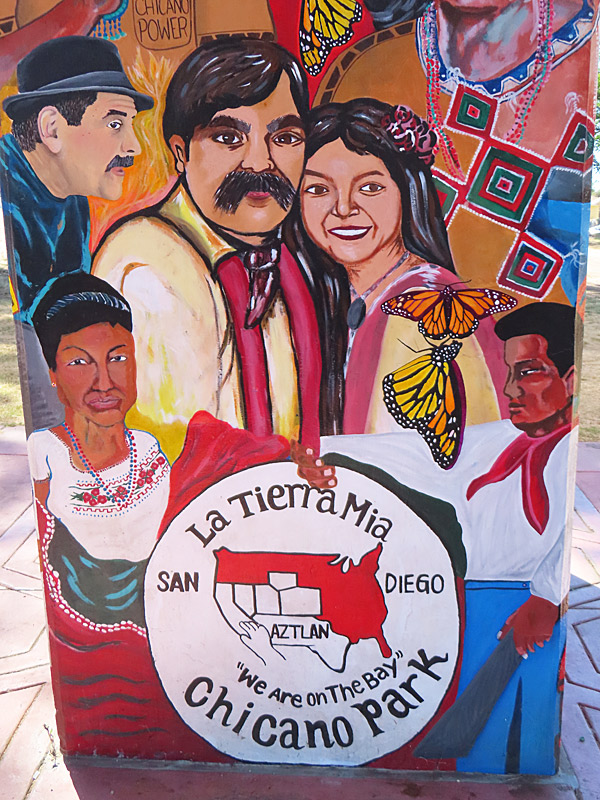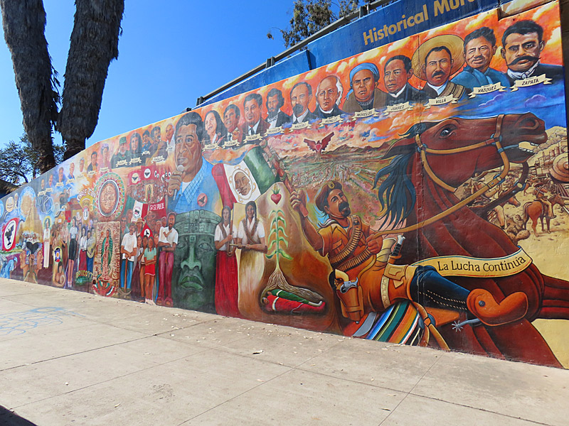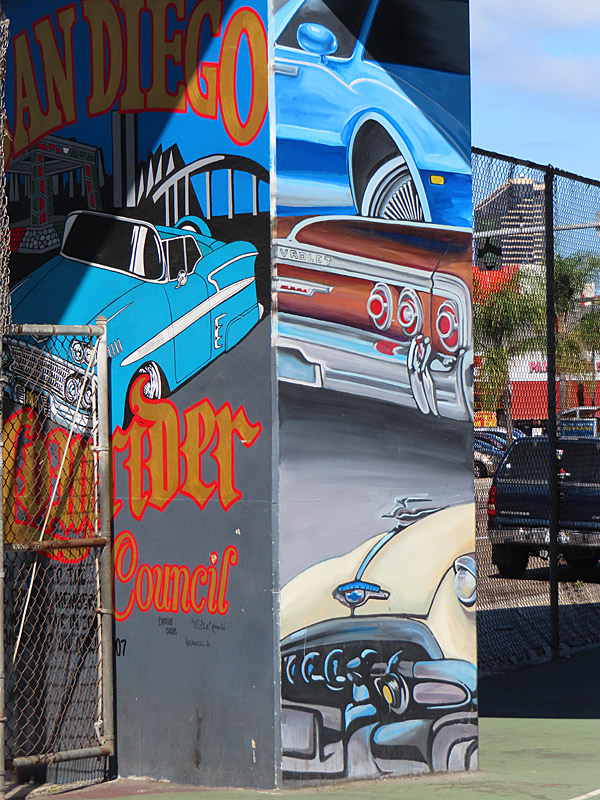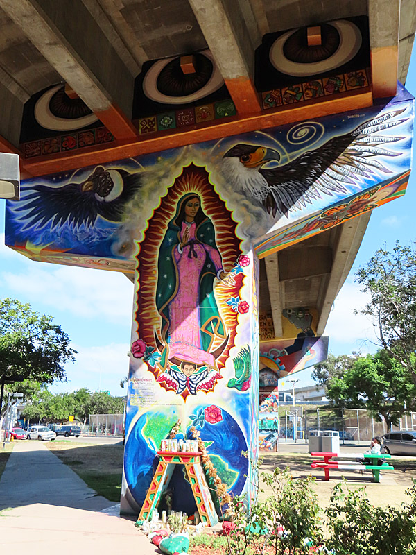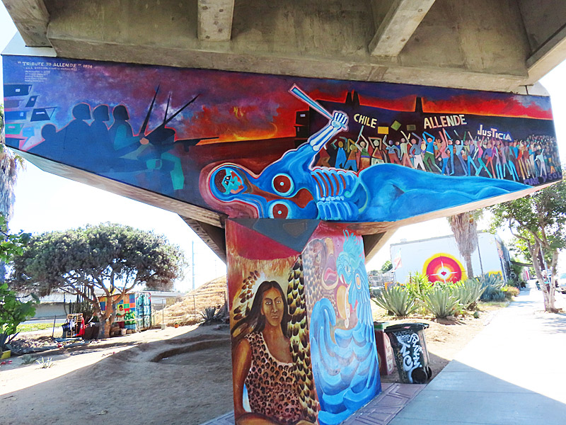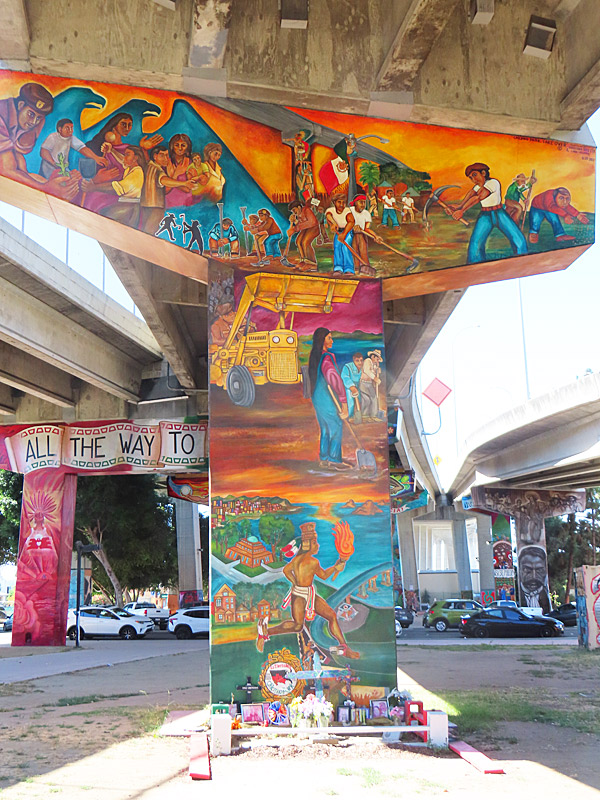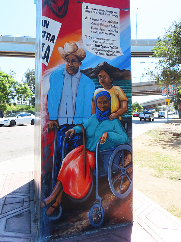 The theme of the art is the history and tradition of the Barrio Logan neighborhood in San Diego.