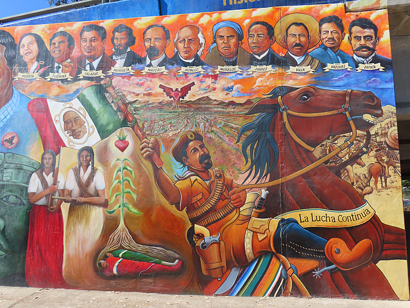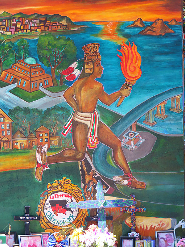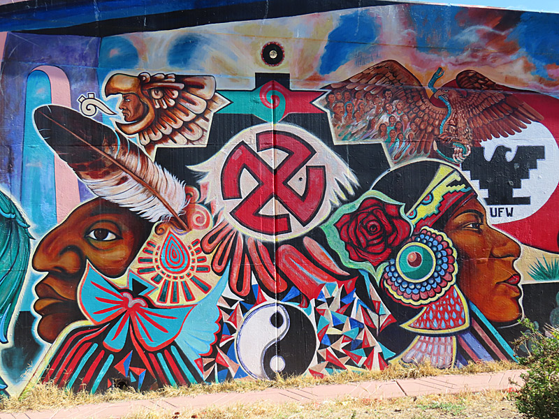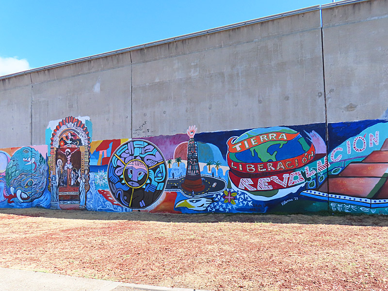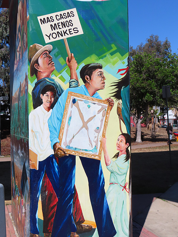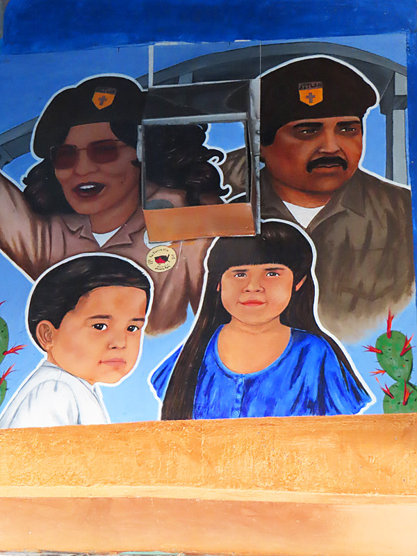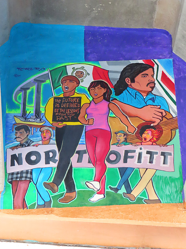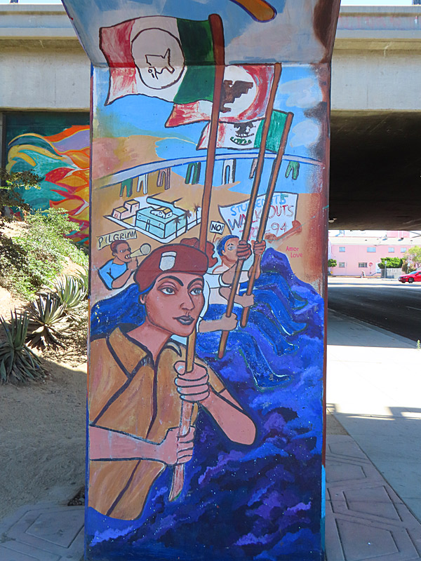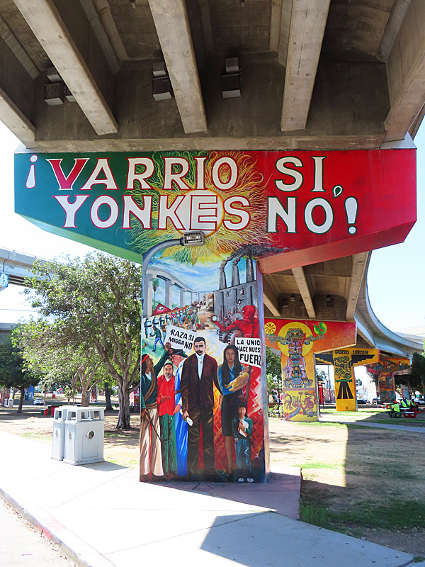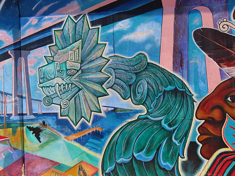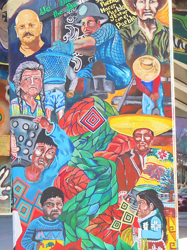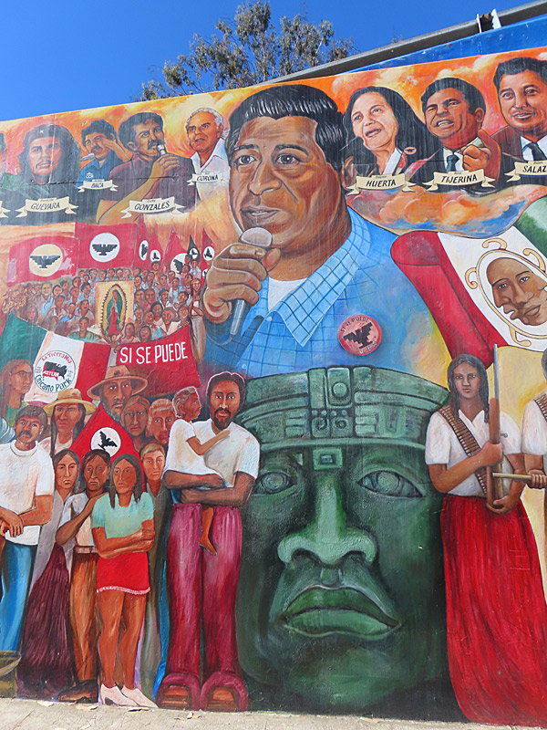 The theme of the art is the history and tradition of the Barrio Logan neighborhood in San Diego.