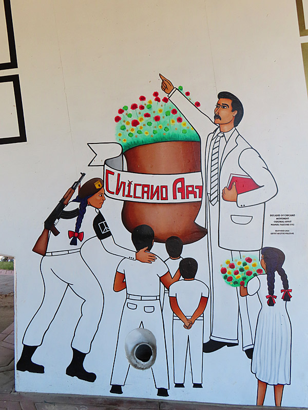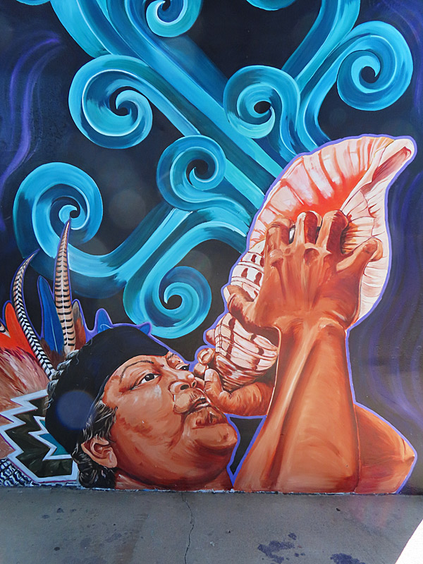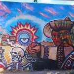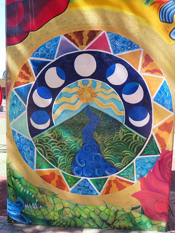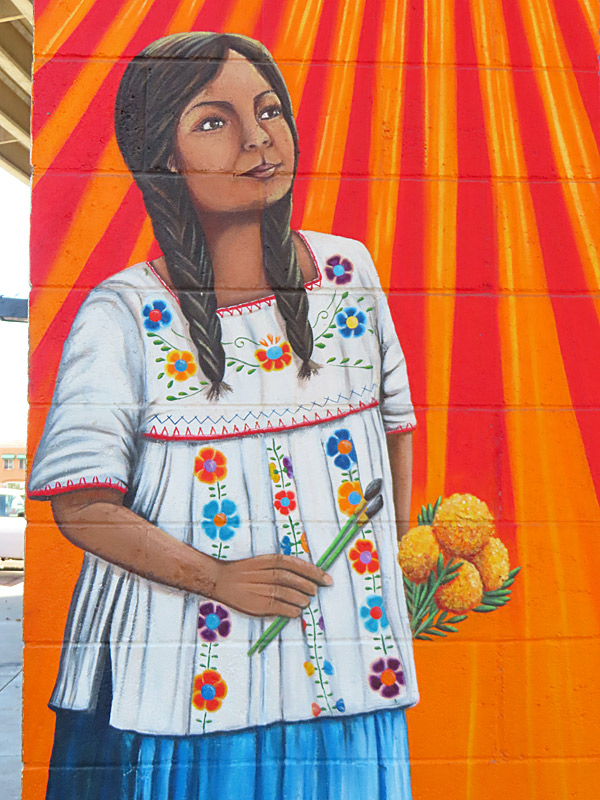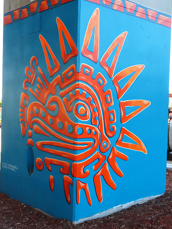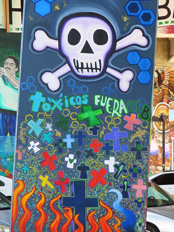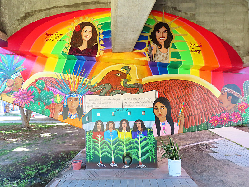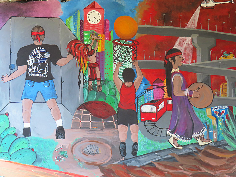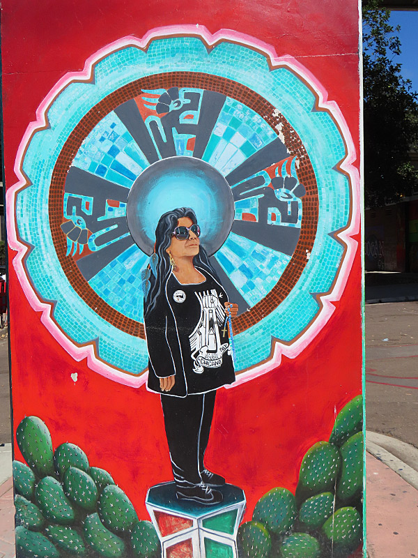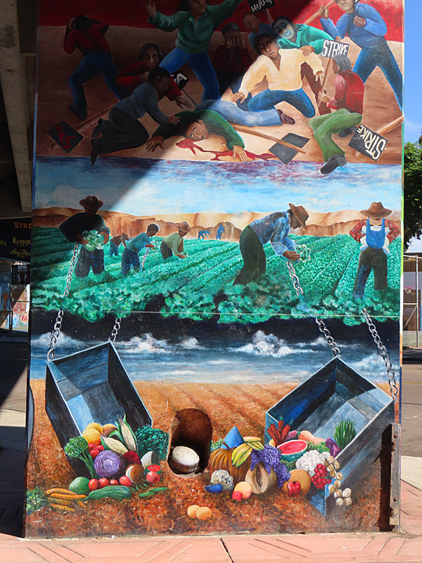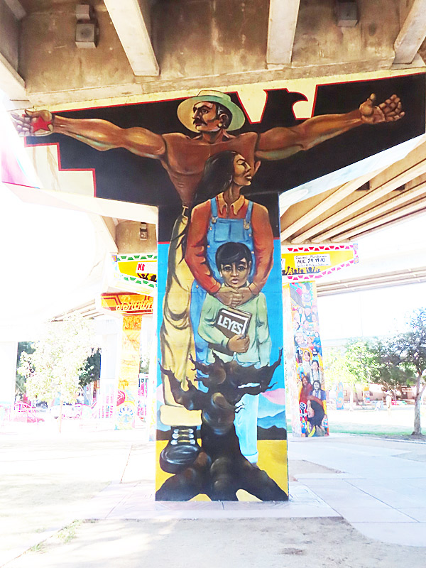 The theme of the art is the history and tradition of the Barrio Logan neighborhood in San Diego.