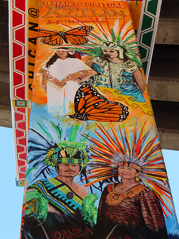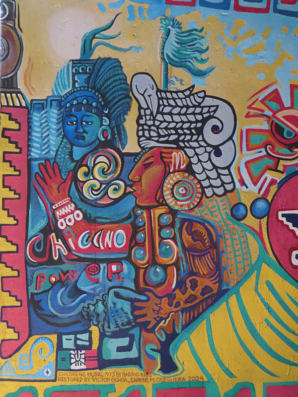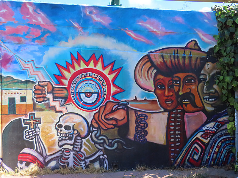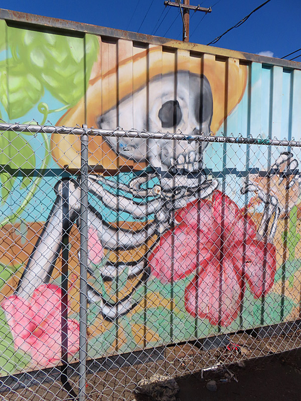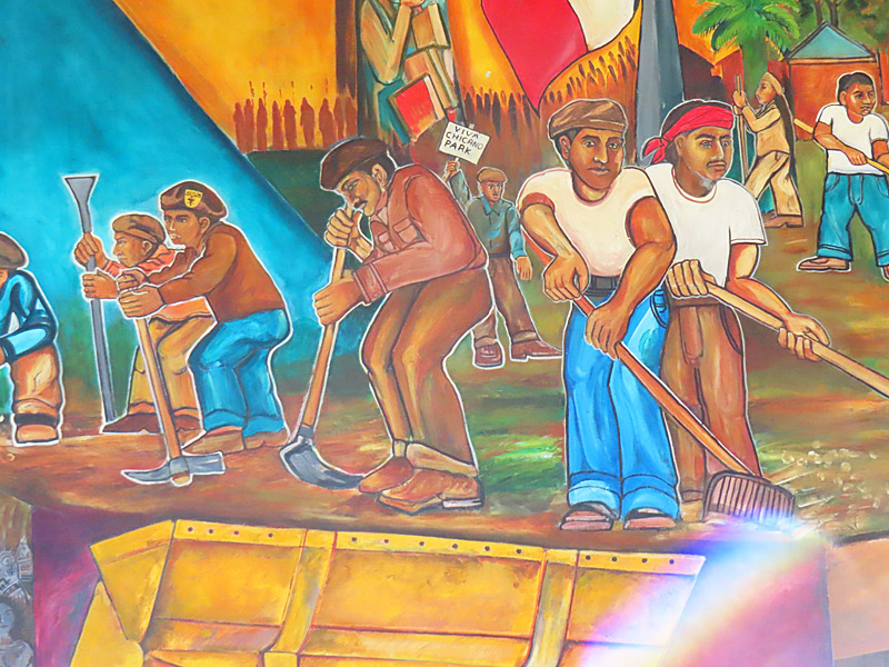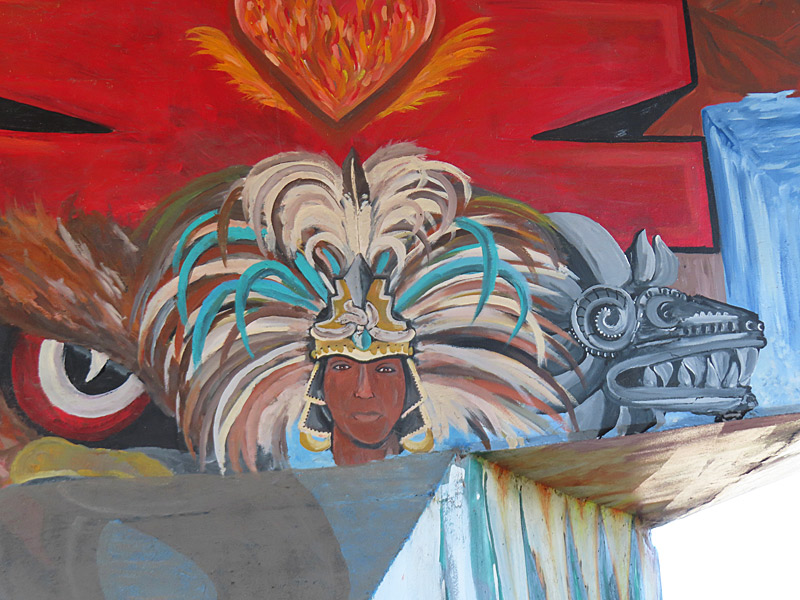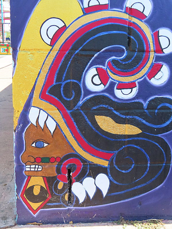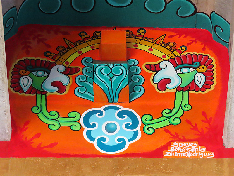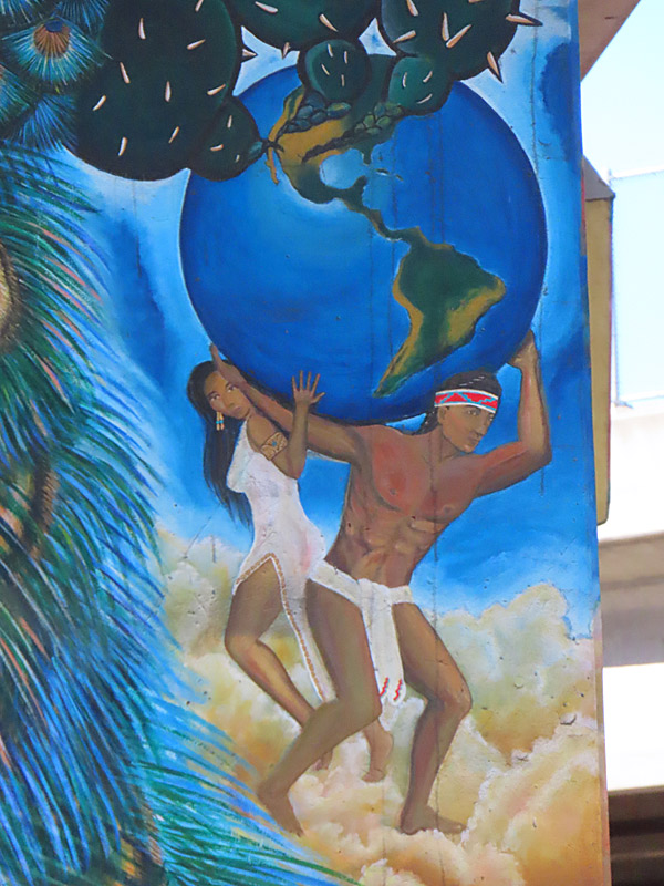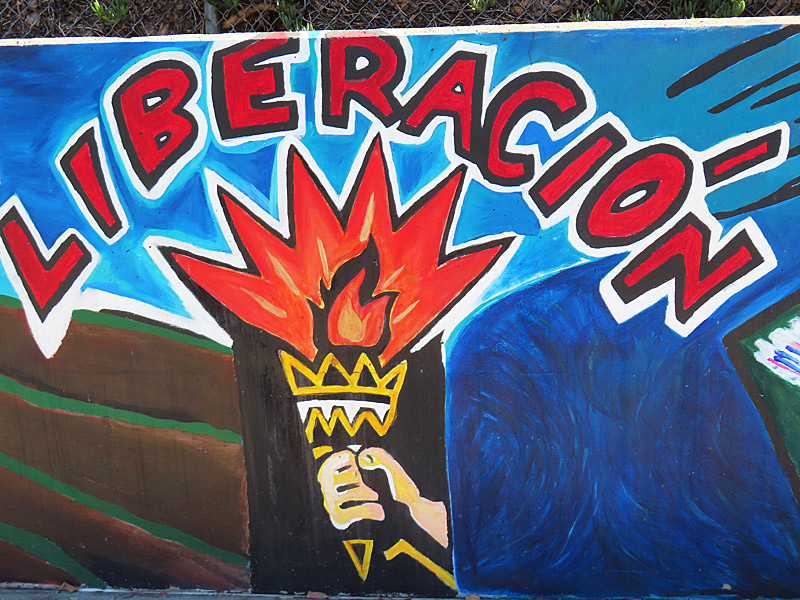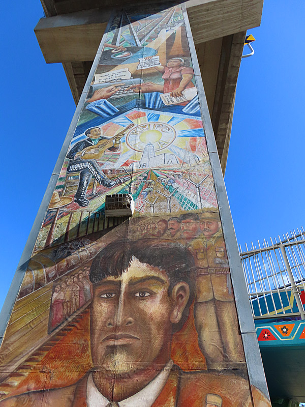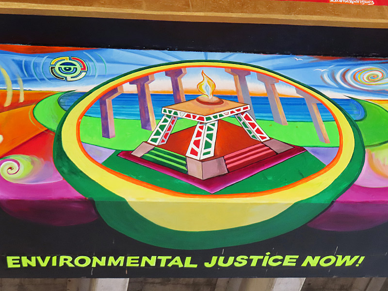 The theme of the art is the history and tradition of the Barrio Logan neighborhood in San Diego.
