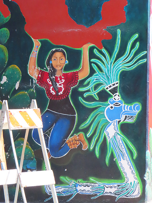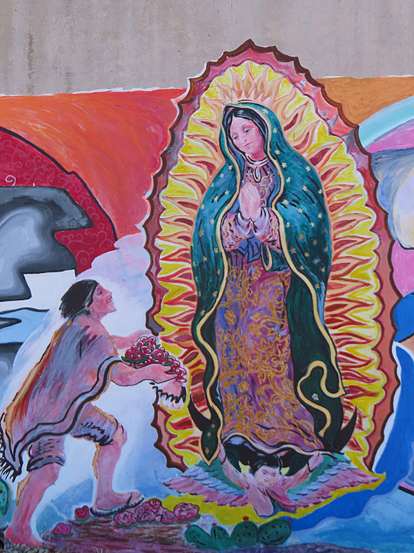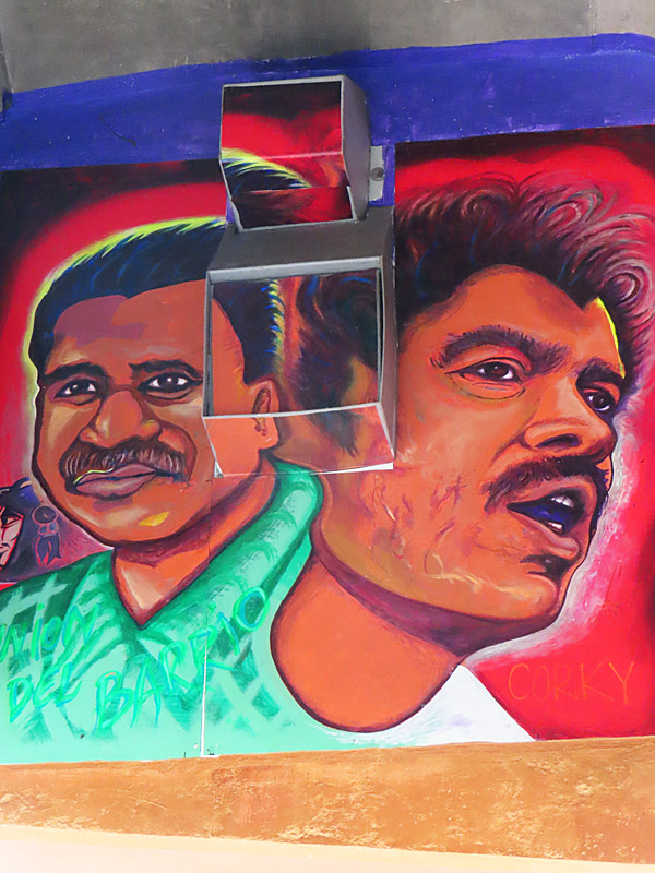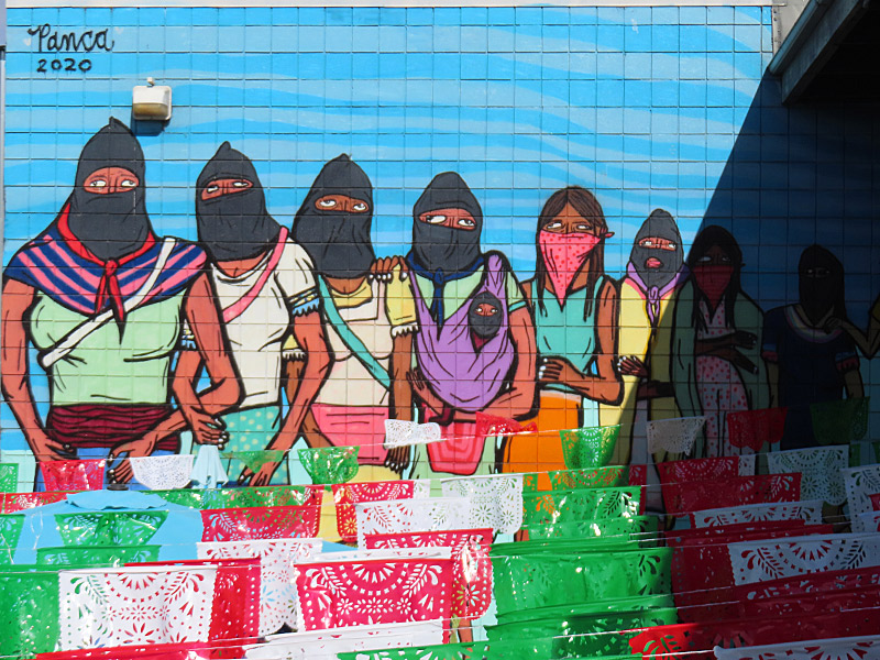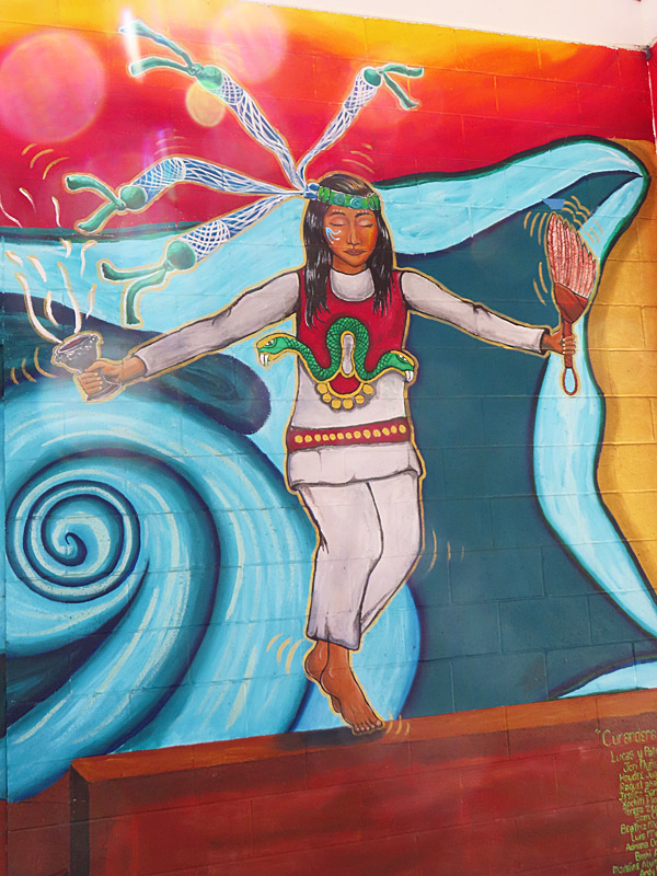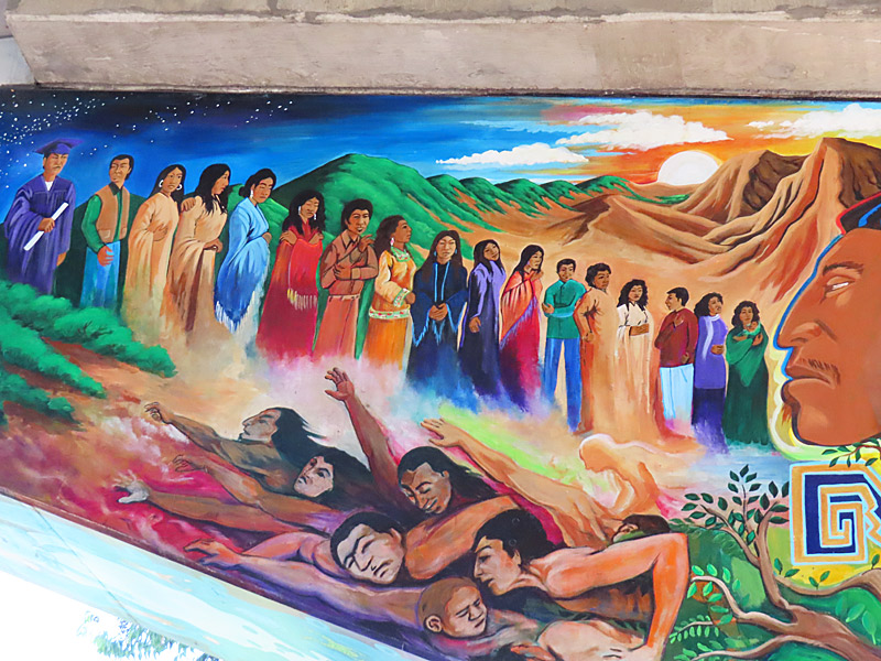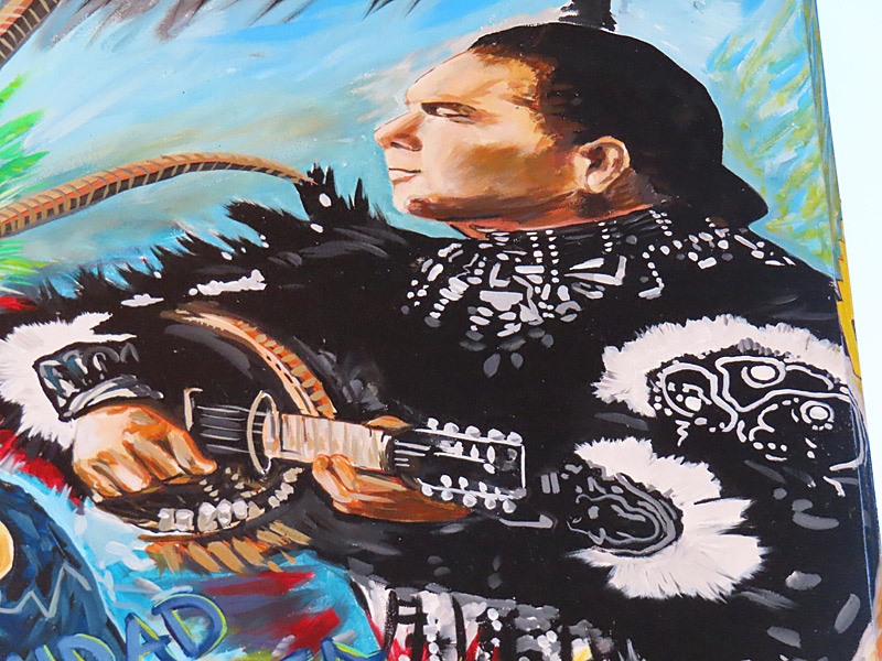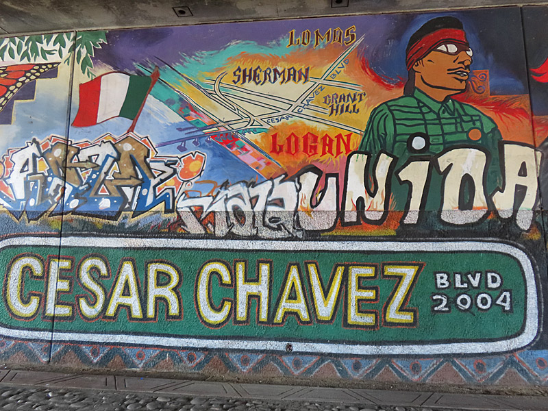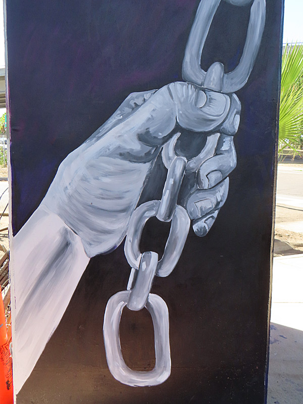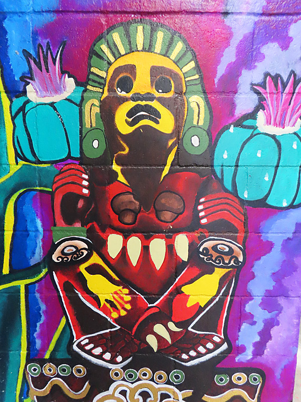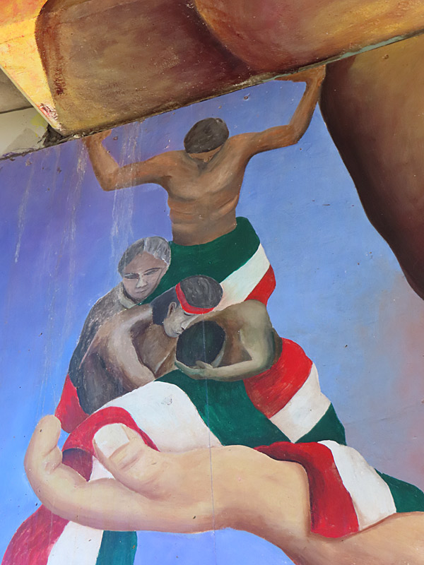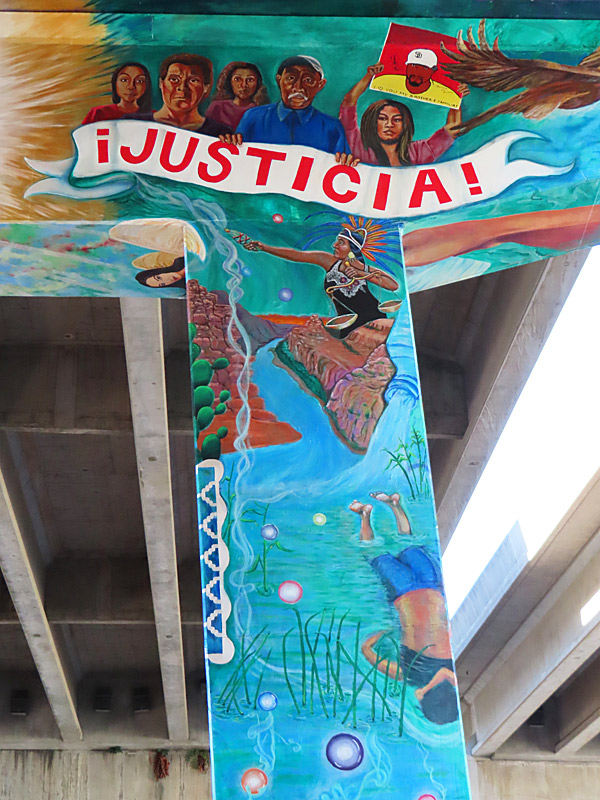 The theme of the art is the history and tradition of the Barrio Logan neighborhood in San Diego.