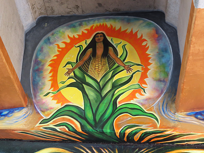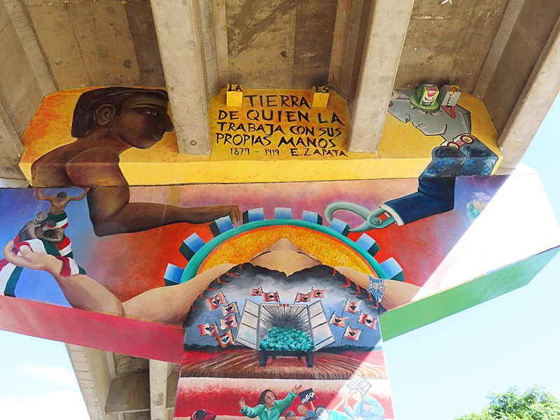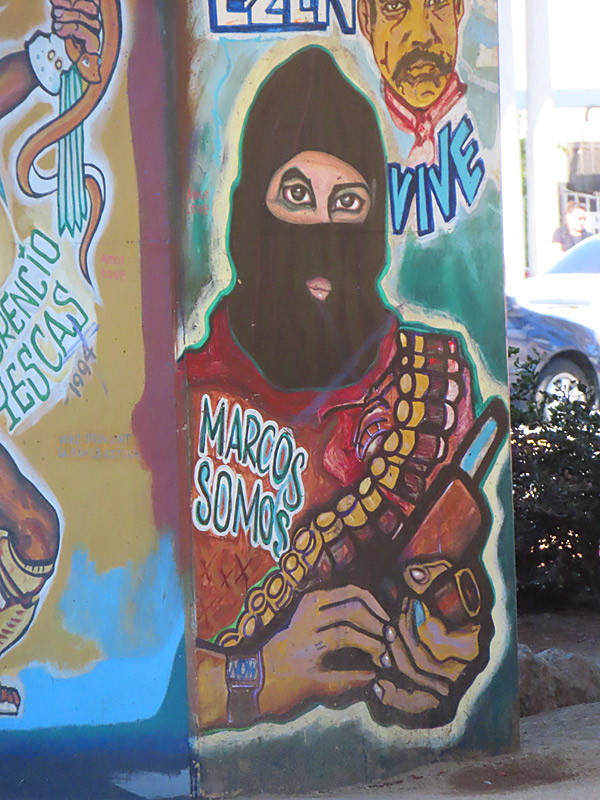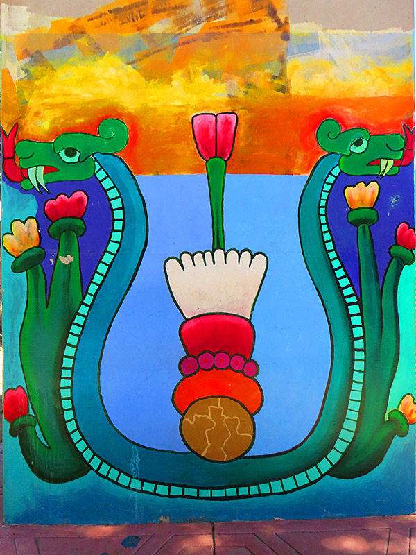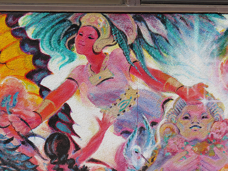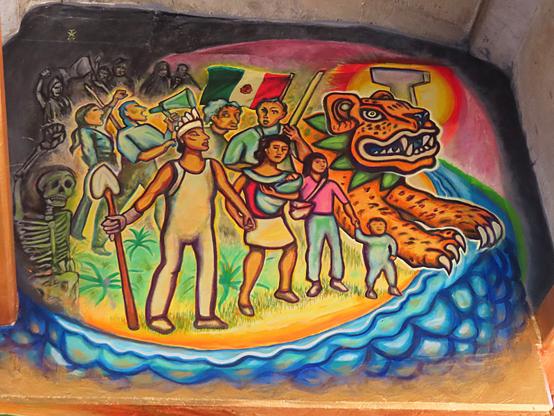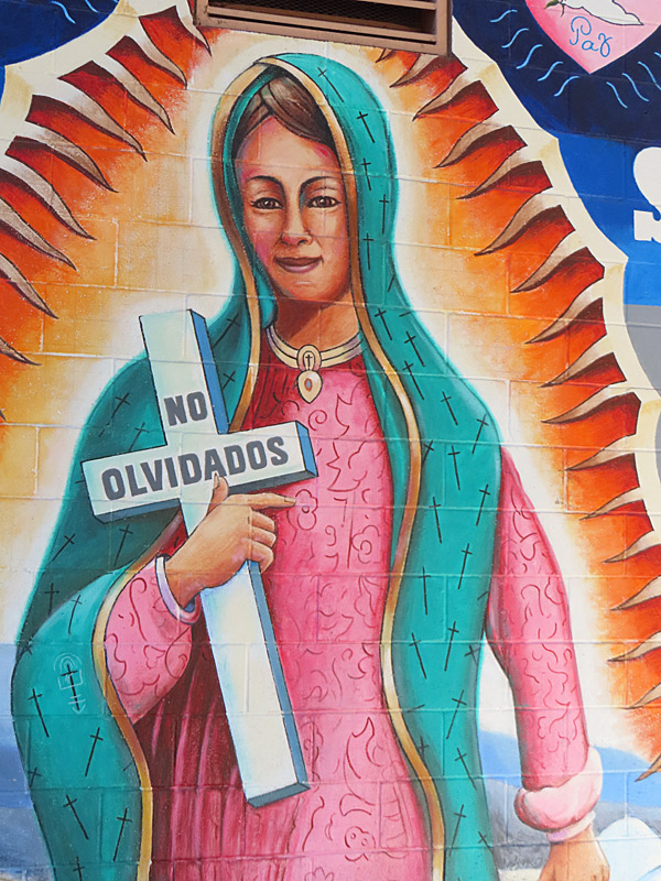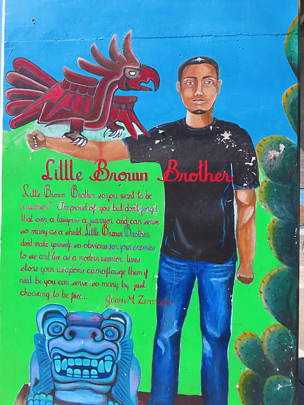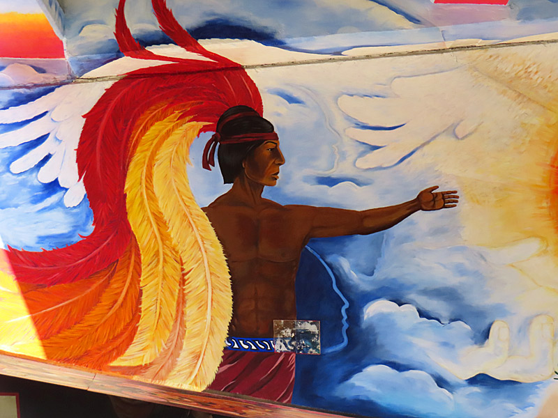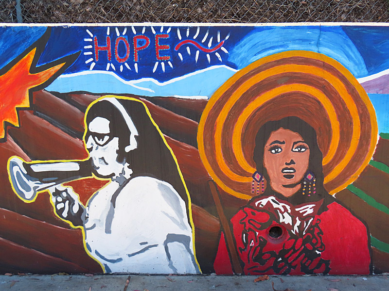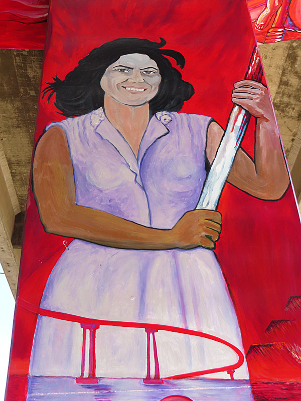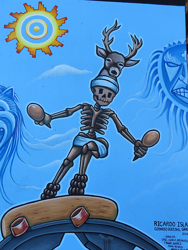 The theme of the art is the history and tradition of the Barrio Logan neighborhood in San Diego.