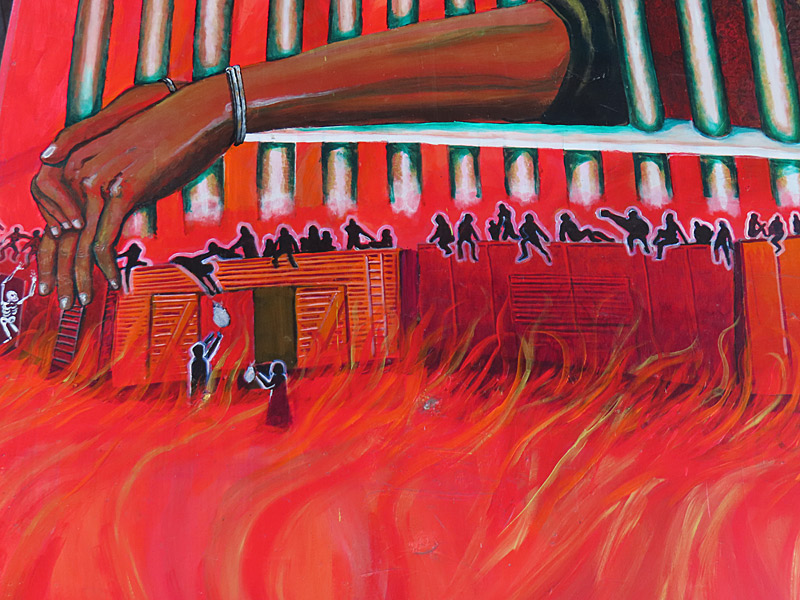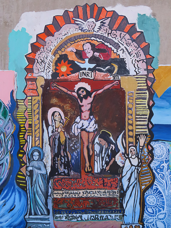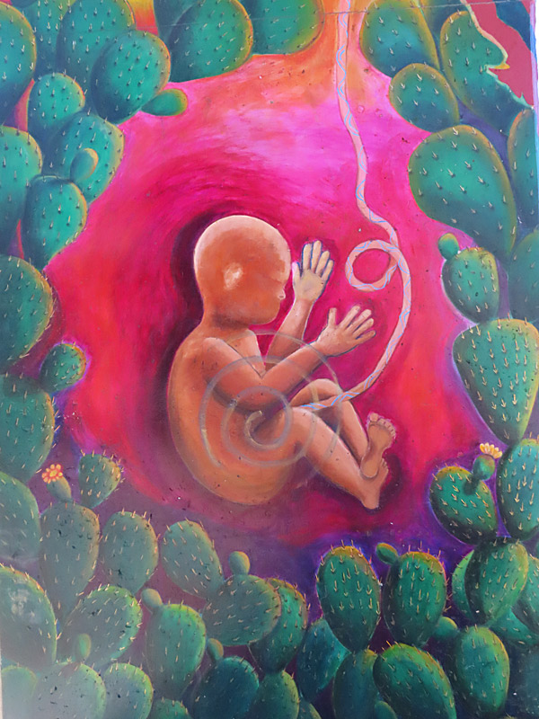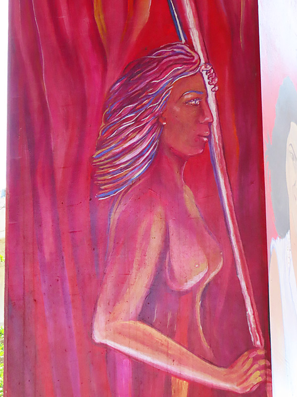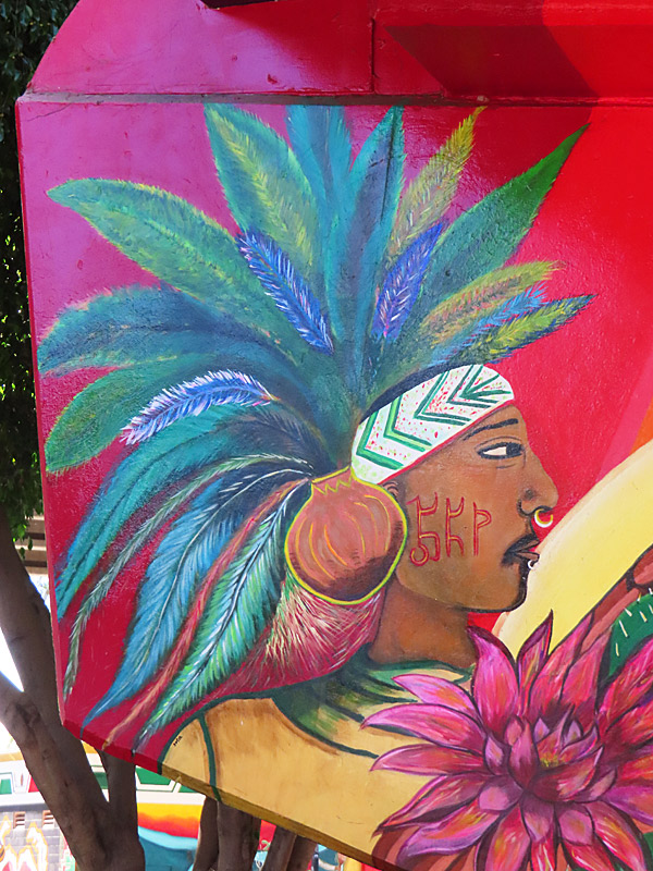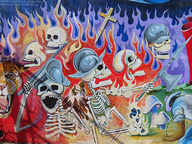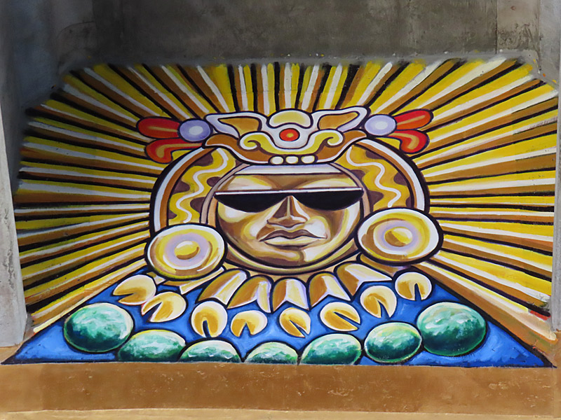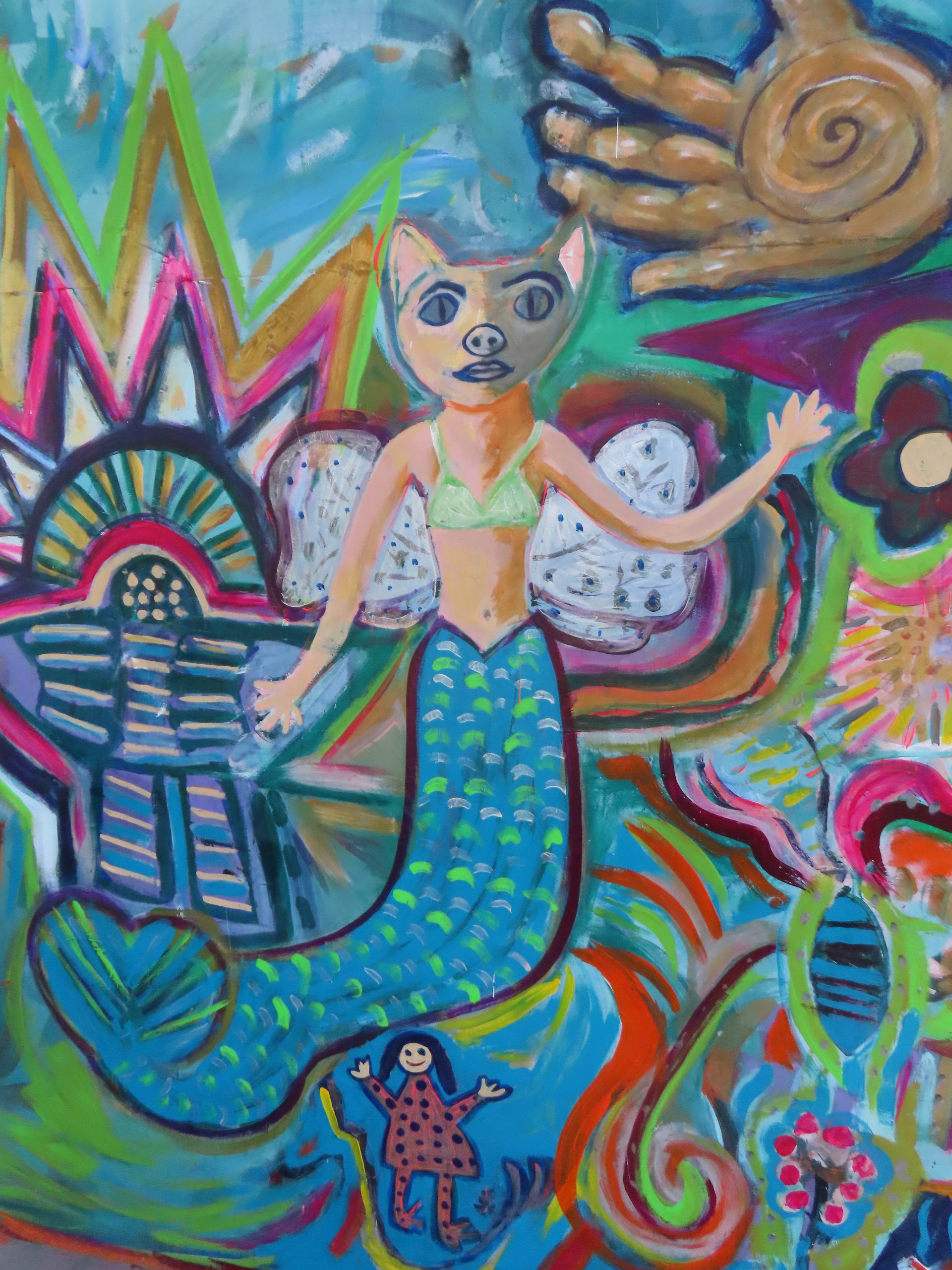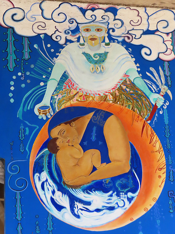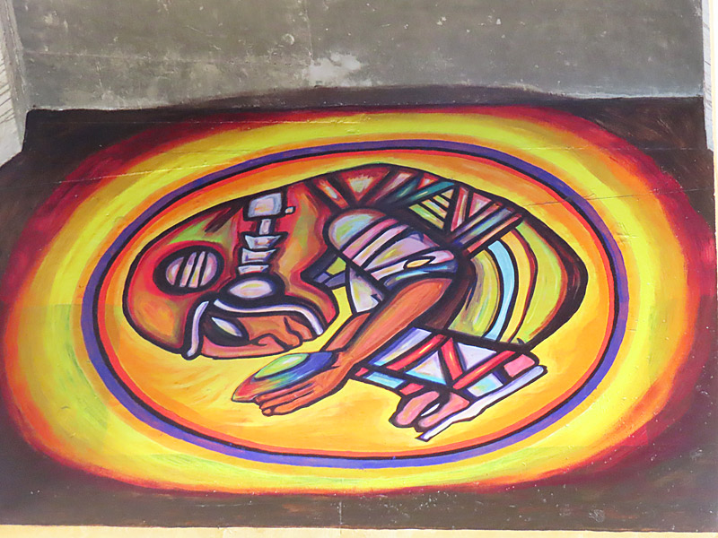 The theme of the art is the history and tradition of the Barrio Logan neighborhood in San Diego.