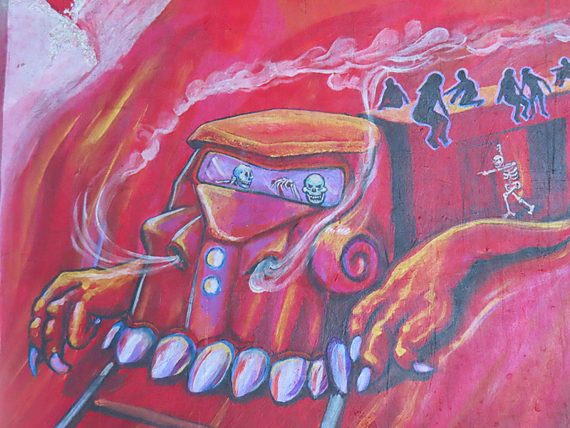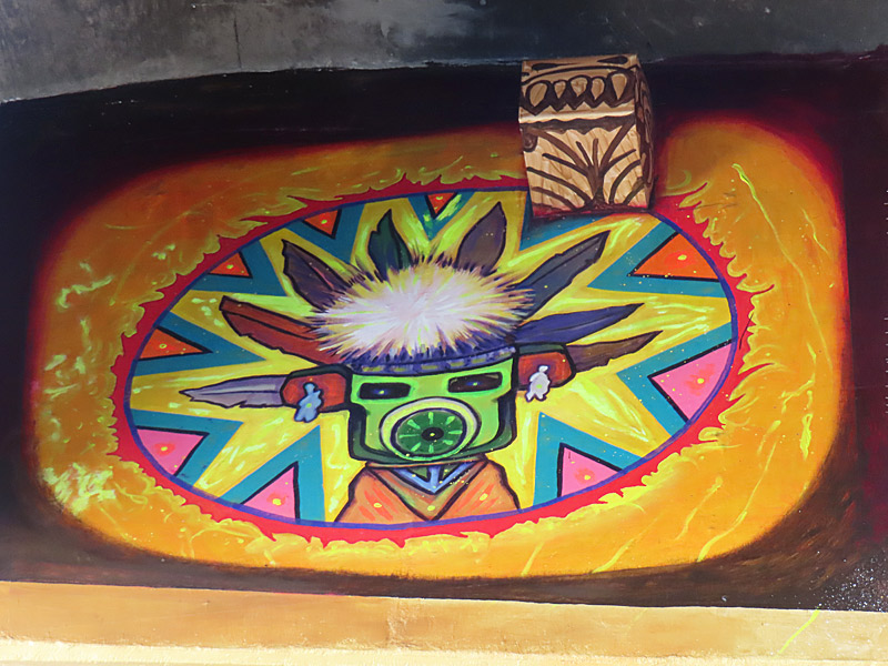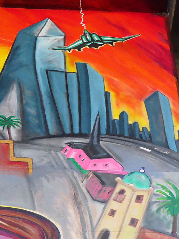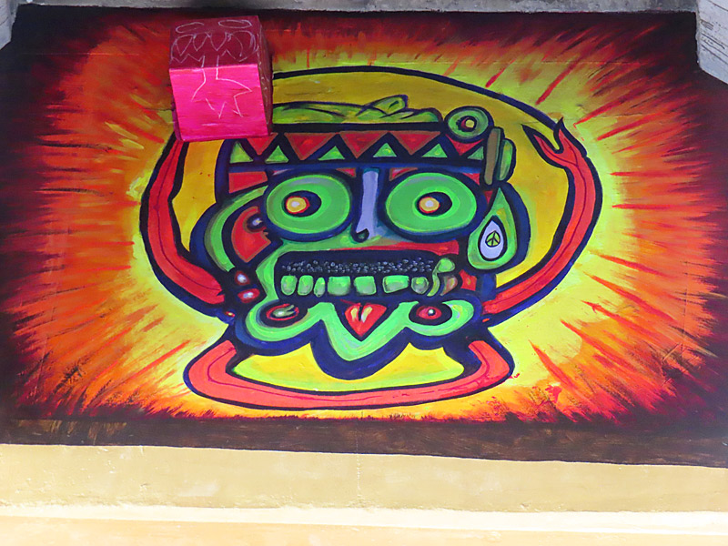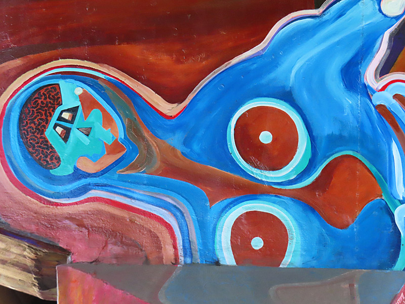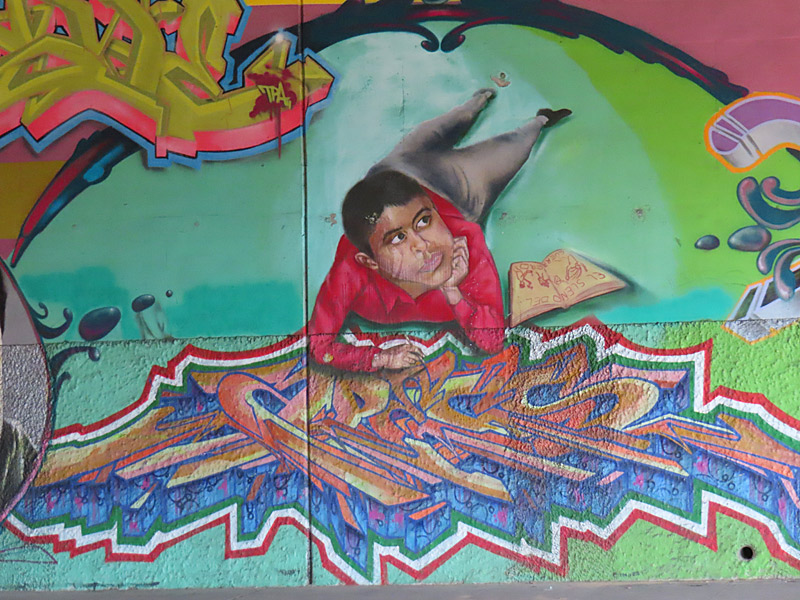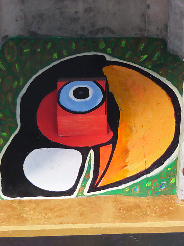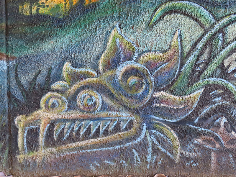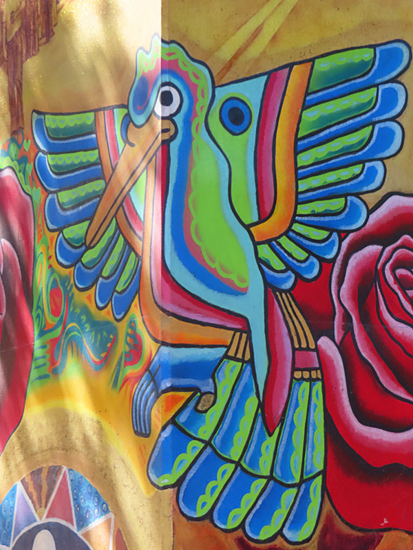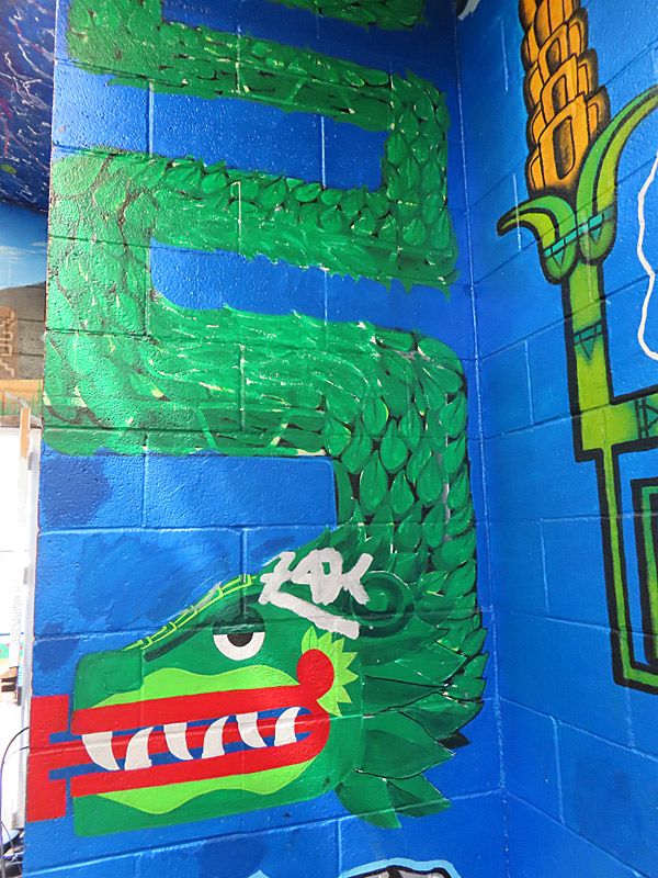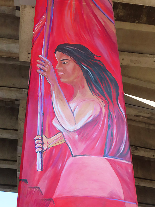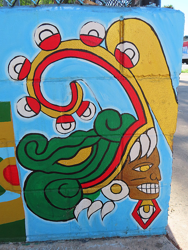 Most of the murals are painted on the infrastructure of a major highway interchange where Interstate 5 meets the road to the Balboa Bridge. Because of that, many of the surfaces are not proper rectangles. It’s interesting to see how the artists work with some odd angles and bridge supports that often are not exactly vertical or horizontal. Some of the murals are even painted on the bottom of the highway – or the ceiling of the park depending on how you look at it.