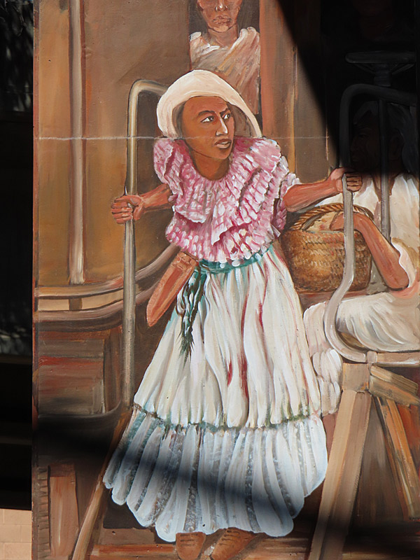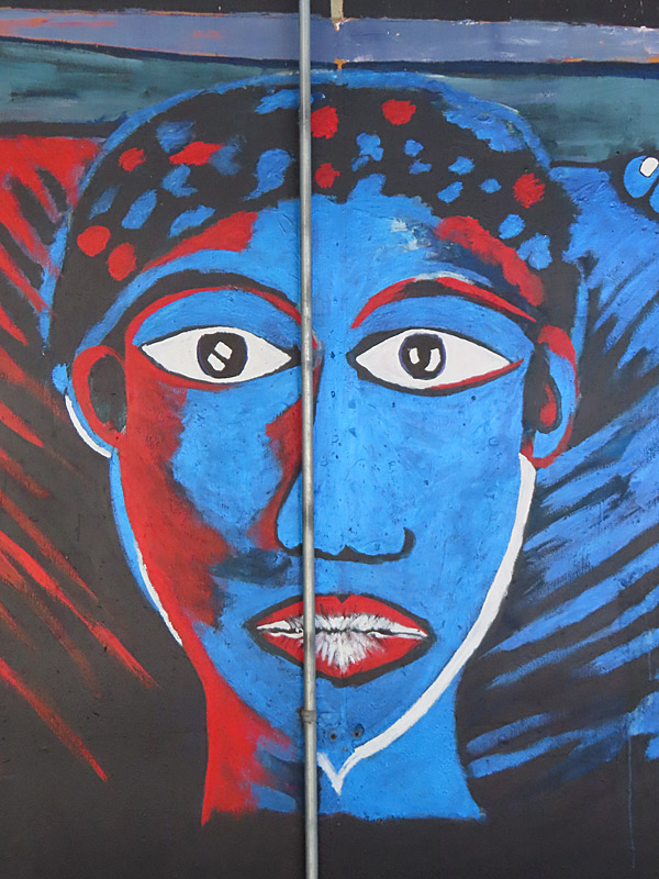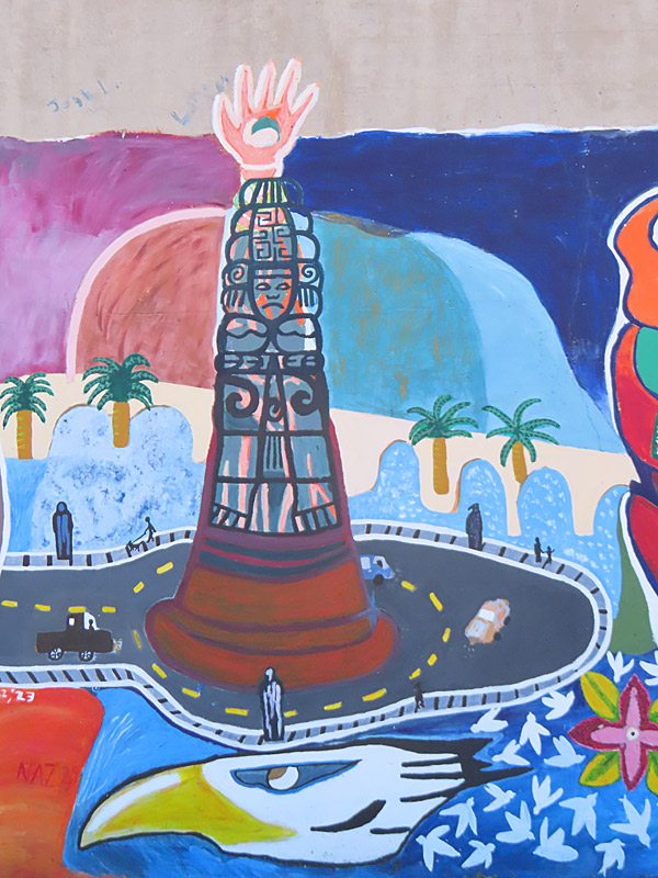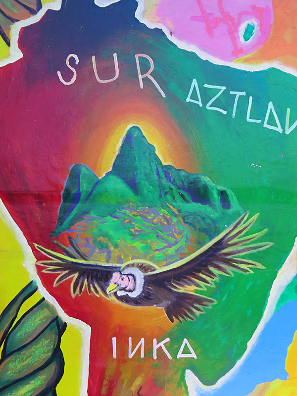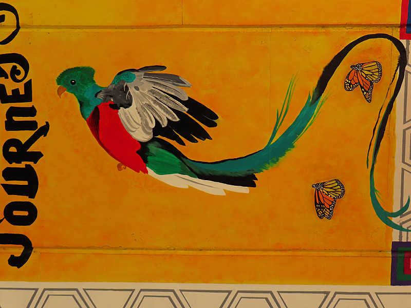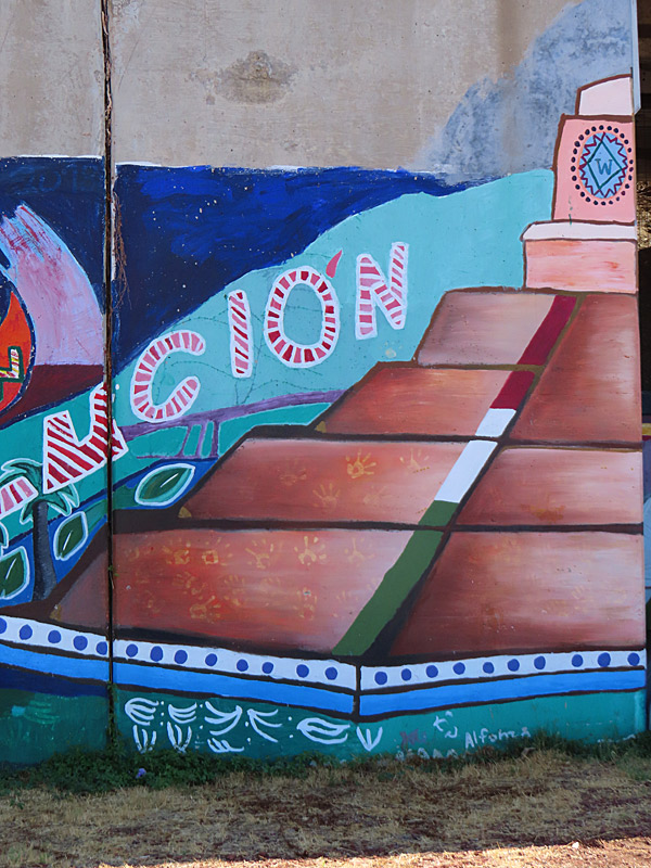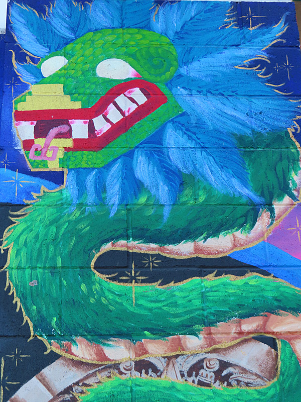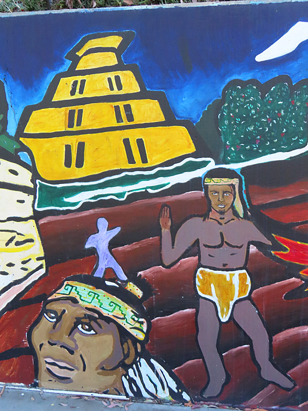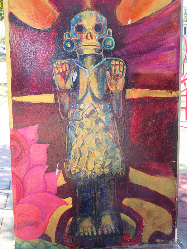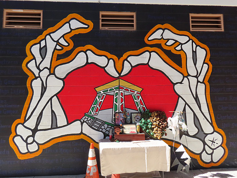 There is a parking area at the park, a few places to sit, a fountain, a small playground for kids and restrooms (even the restrooms have murals). There are also some neighborhood restaurants within walking distance.