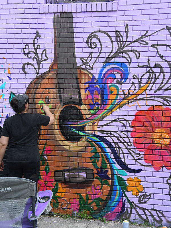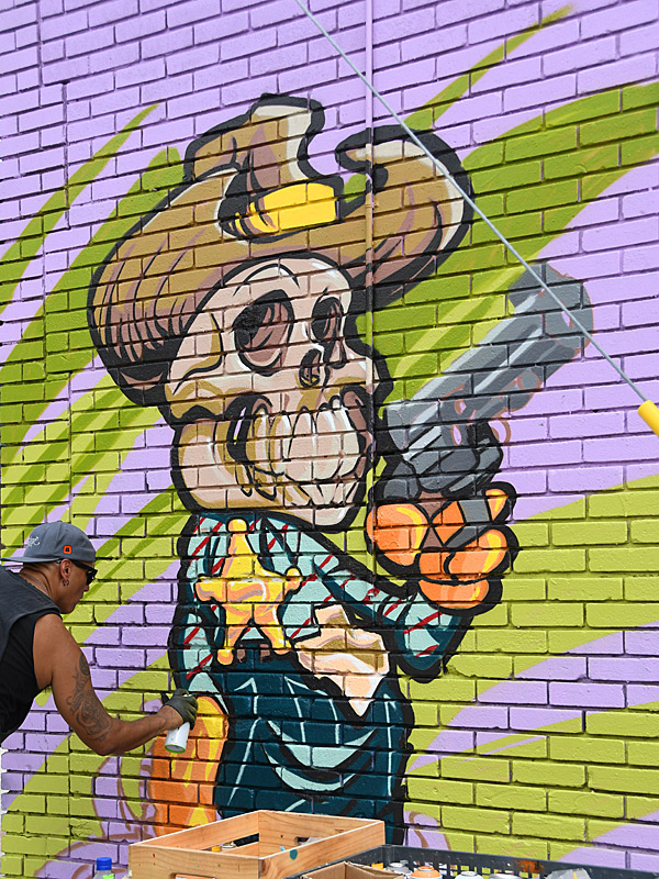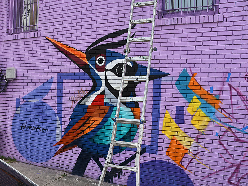 Nolan Street dips under the railroad tracks here. This has long been the location of another colorful mural on the opposite side of the street.