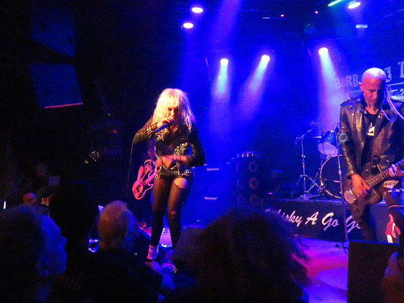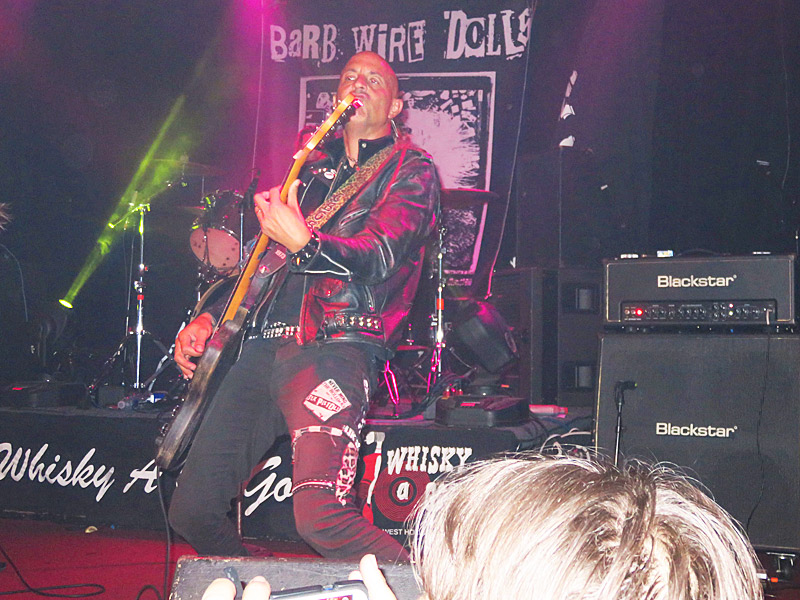 Lead guitarist Pyn Doll and Barb Wire Dolls in concert at Whisky A Go Go in West Hollywood, California, on Aug. 24, 2015. – photo by Joe AlexanderThe Greek punk band Barb Wire Dolls were making regular appearances at the legendary rock n roll venue Whisky A Go Go in West Hollywood around the time of this concert on Aug. 24, 2015.