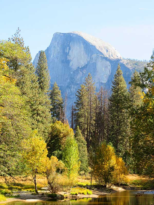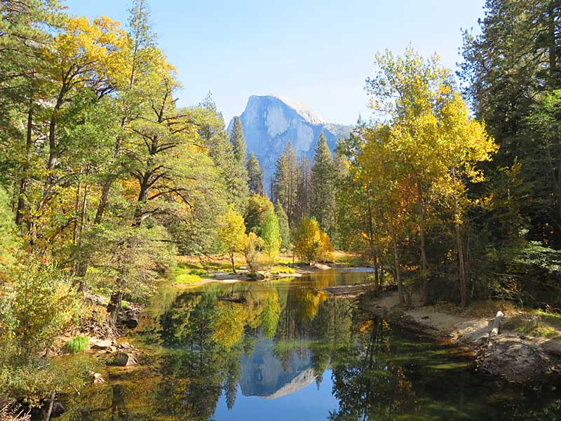I found a spot on the edge of the Merced River where I could catch the reflection of Half Dome. The exact location where I stood, while a dry spot in late October, might have been six- or eight-feet deep in raging water at the peak of the snowmelt earlier in the year.