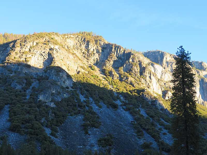 The dark side of Half Dome in the morning will light up in the afternoon.