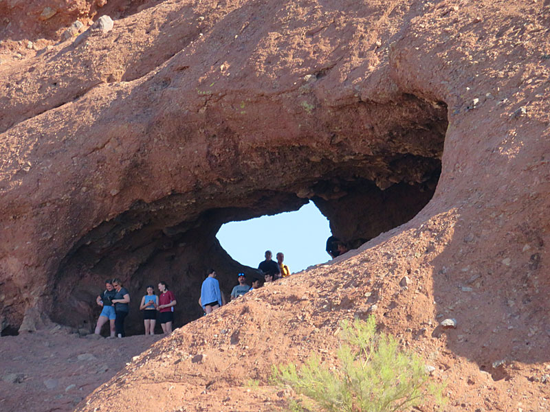 Hole In The Rock passes through a reddish sandstone formation in Papago Park. The hike up to the hole from the parking lot is less than a half mile.