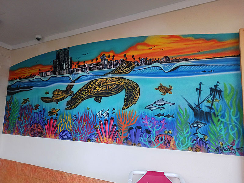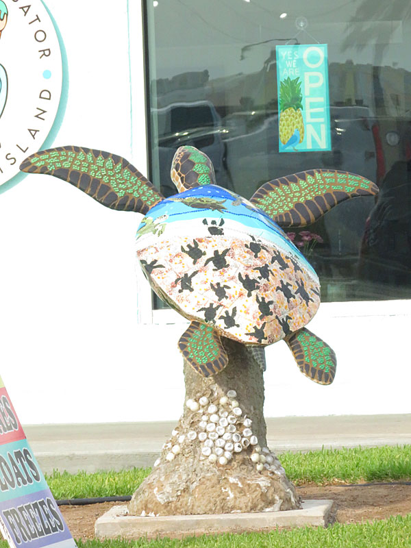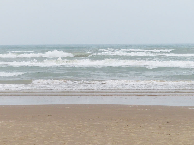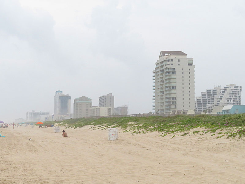The gulf side of the island is lined with hotels and condos that face the wide beach and the waves.