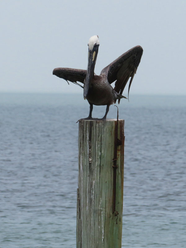 You can see them at South Padre Island flying over the water or perched on poles in the Laguna Madre.