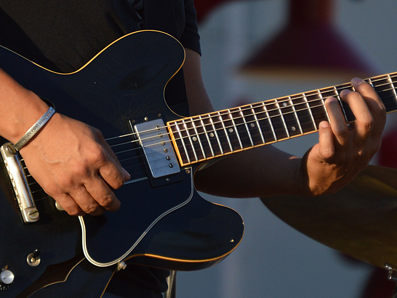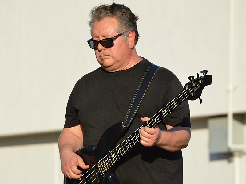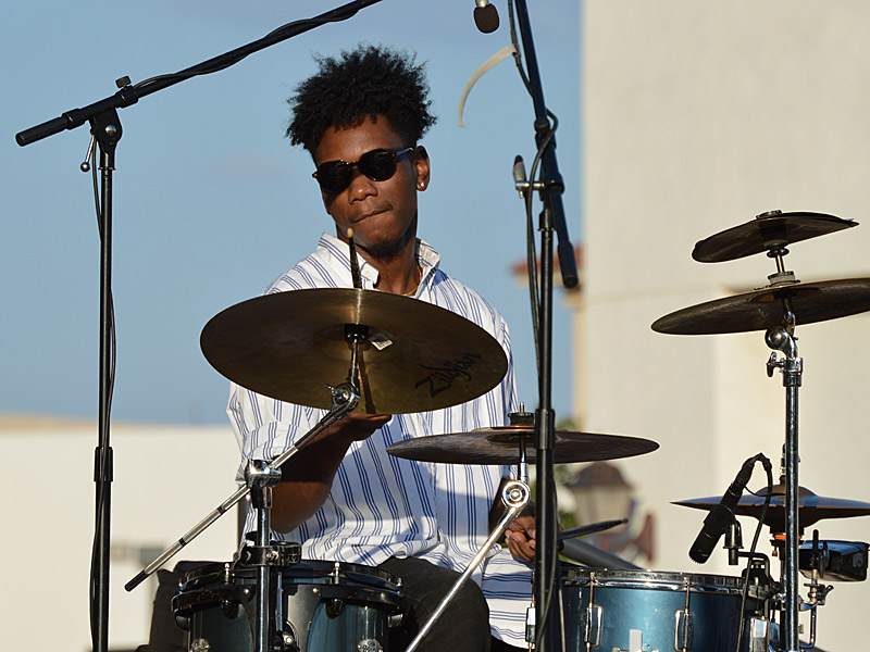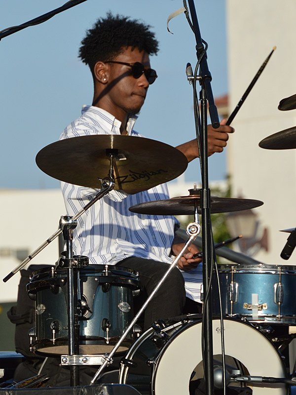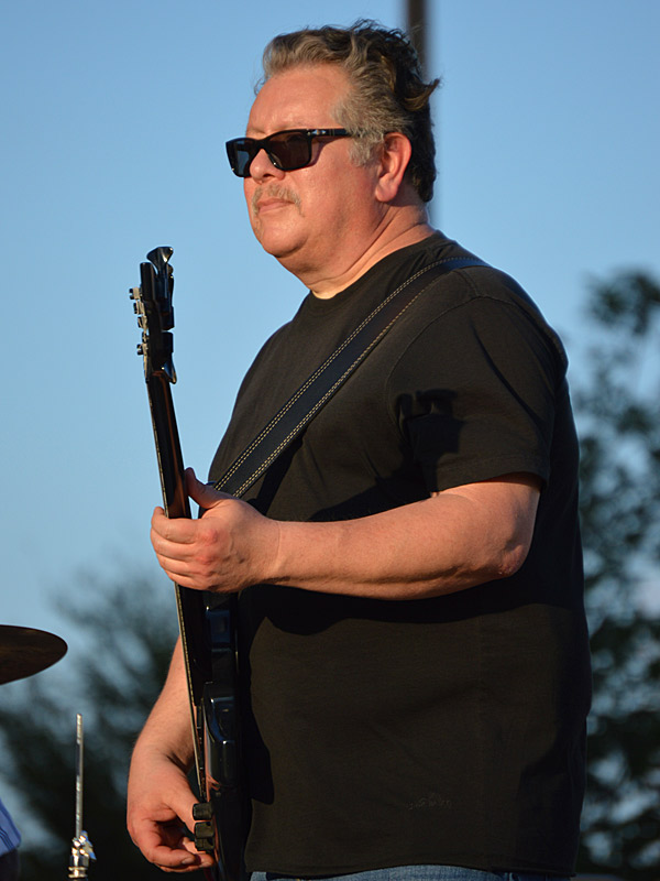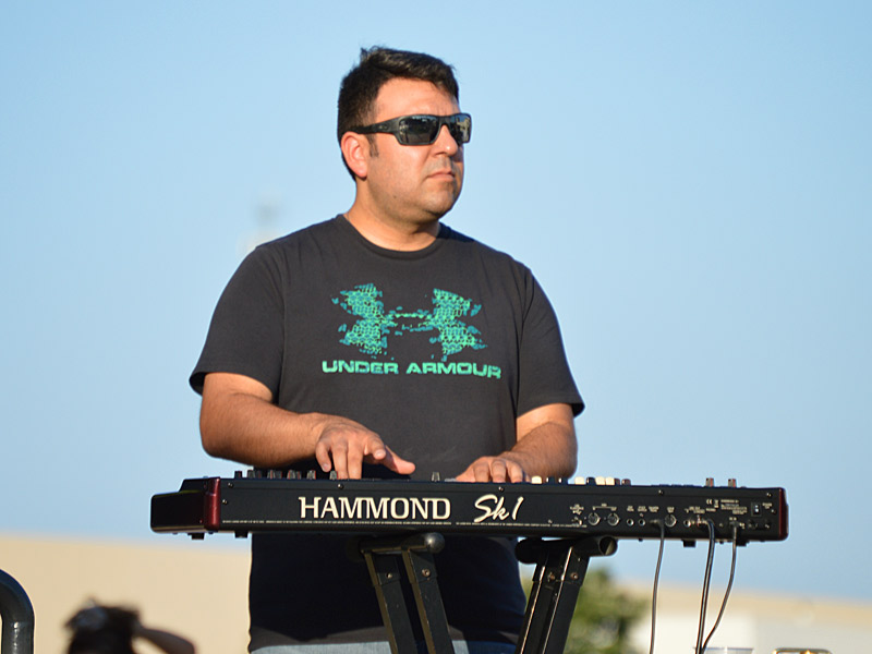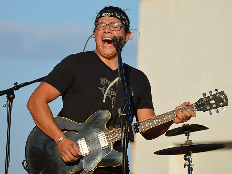 The Chris Cuevas Project with some sunset blues. – photo by Joe AlexanderThe Chris Cuevas Project played as the setting sun lit up Commons Park at the Rim on San Antonio’s north side on Wednesday, Aug. 2, 2023.