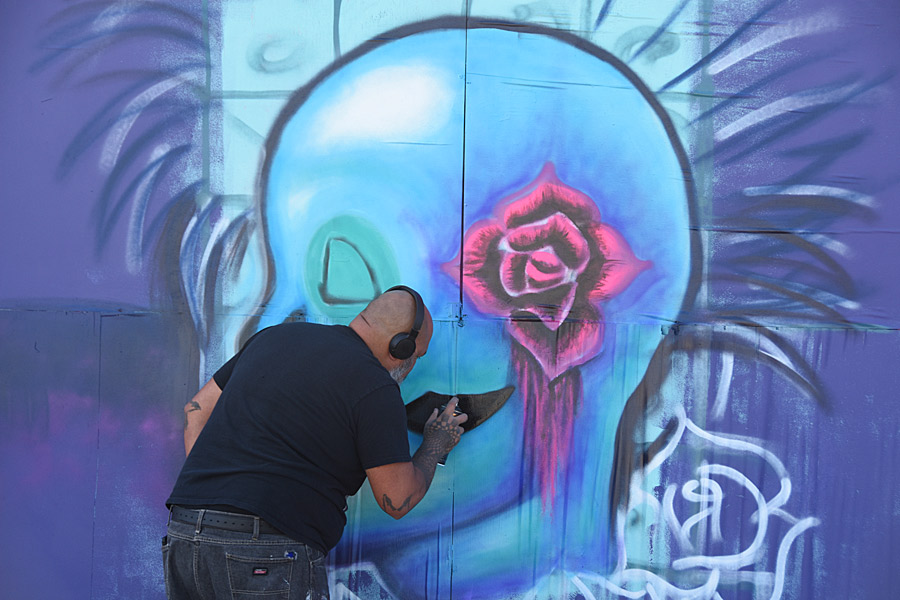 The Essex Paint Jam Volume 4 attracted some of the area’s top local muralists back to Essex Modern City on the near East Side not far from downtown San Antonio and just a little ways south of the Alamodome.