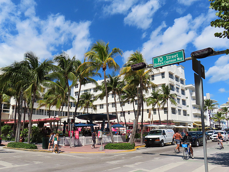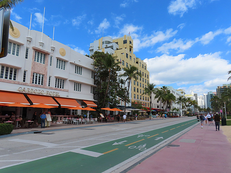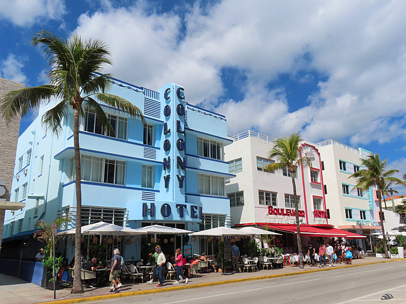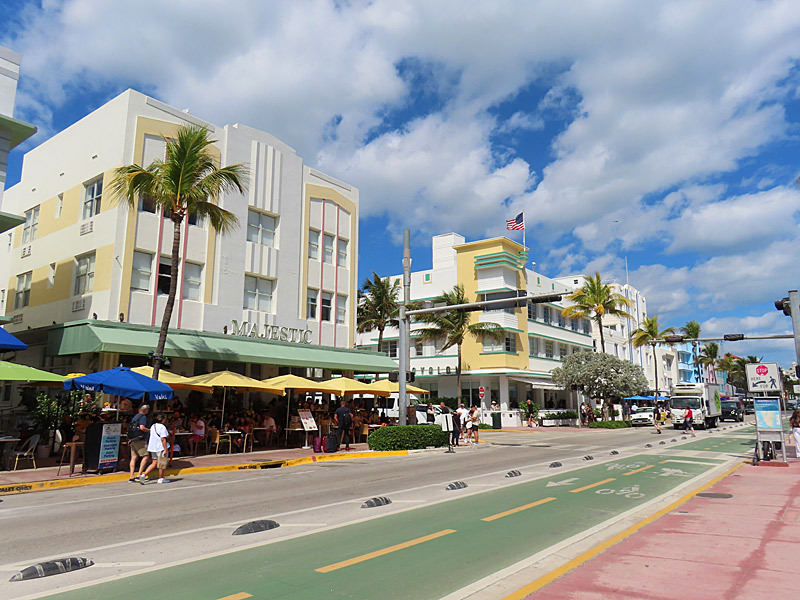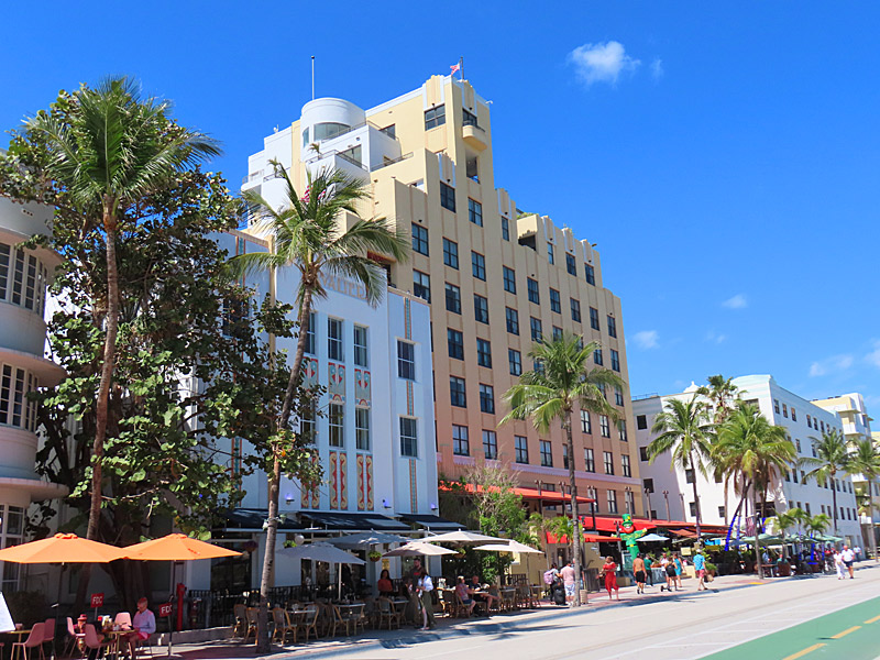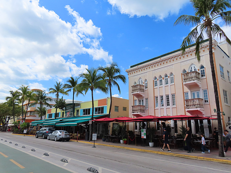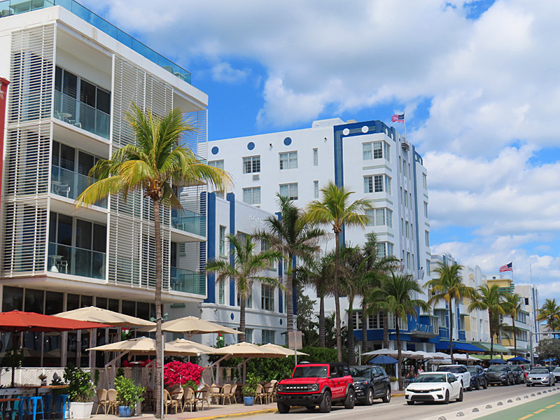 Ocean Drive in the South Beach neighborhood of Miami Beach. – photo by Joe AlexanderThe art deco facades on Ocean Drive bring back memories of Miami Vice.