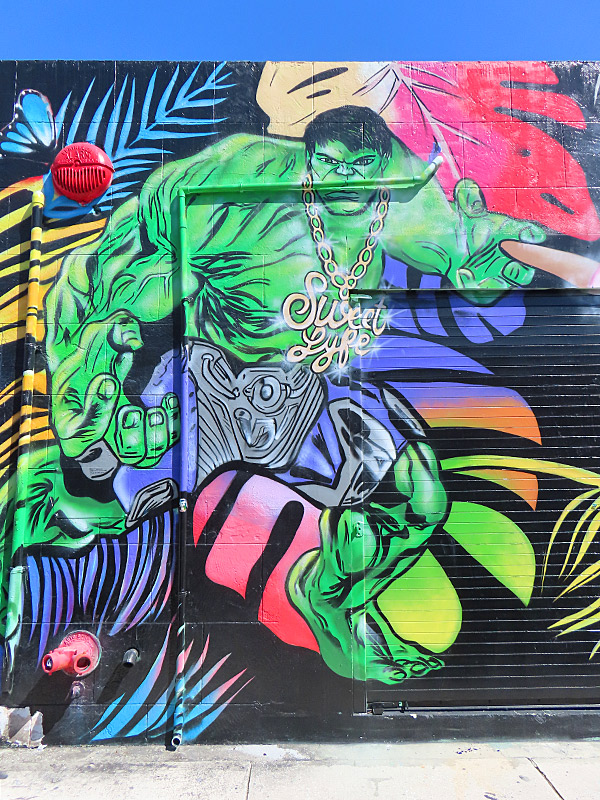 Mural art in the Wynwood neighborhood of Miami, Florida.What was an industrial and warehouse section of Miami north of downtown is now largely covered with colorful murals.