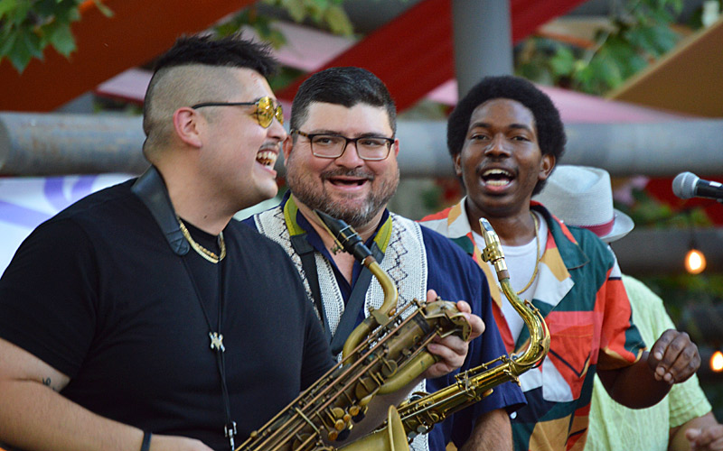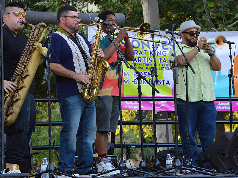 Bombasta, which dubs itself a “barrio-big-band”, combines a horn section and cumbia rhythms with a traditional Texas band lineup.
