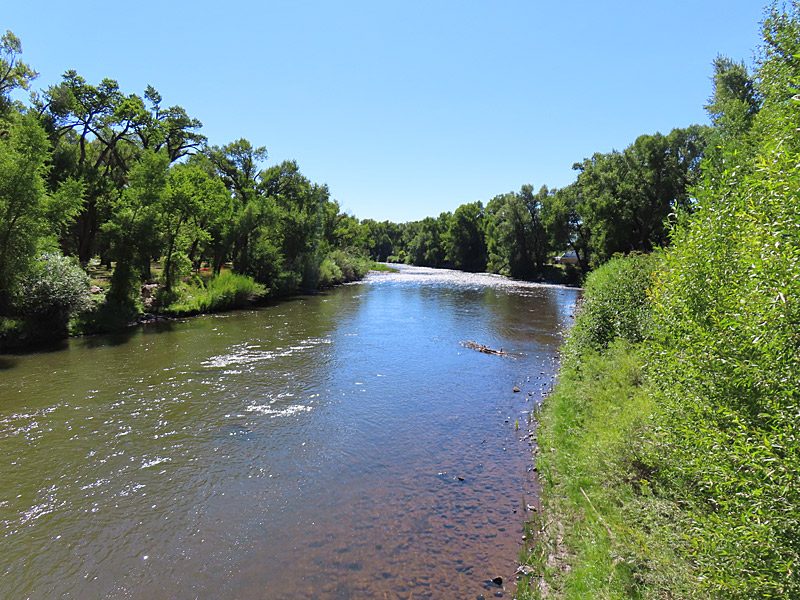 The Animas River, known for its trout fishing, flows through the heart of the city and along Historic Downtown Durango.