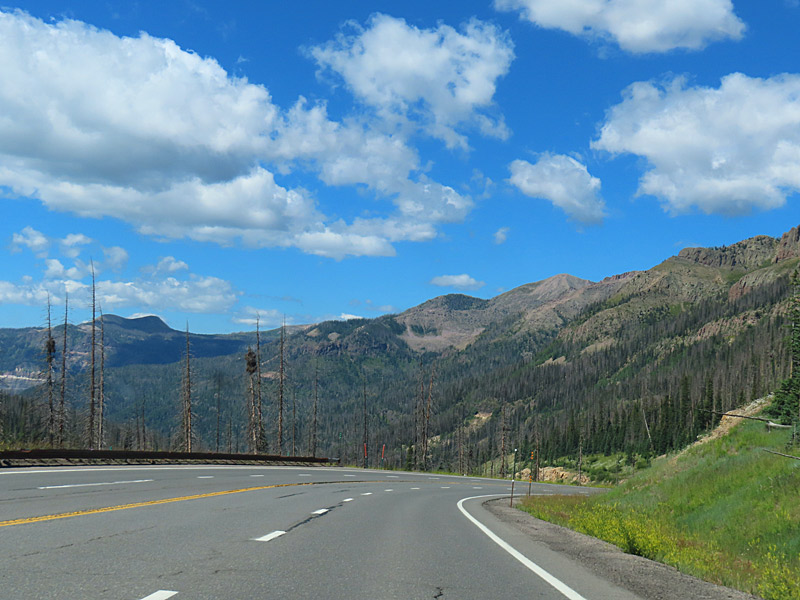 Heading west from Del Norte to Durango provides more steep grades and winding turns along Highway 160. I enjoyed the views but I was sure glad I wasn’t driving a semi. And I crossed the Great Divide again, this time at Wolf Creek Pass.