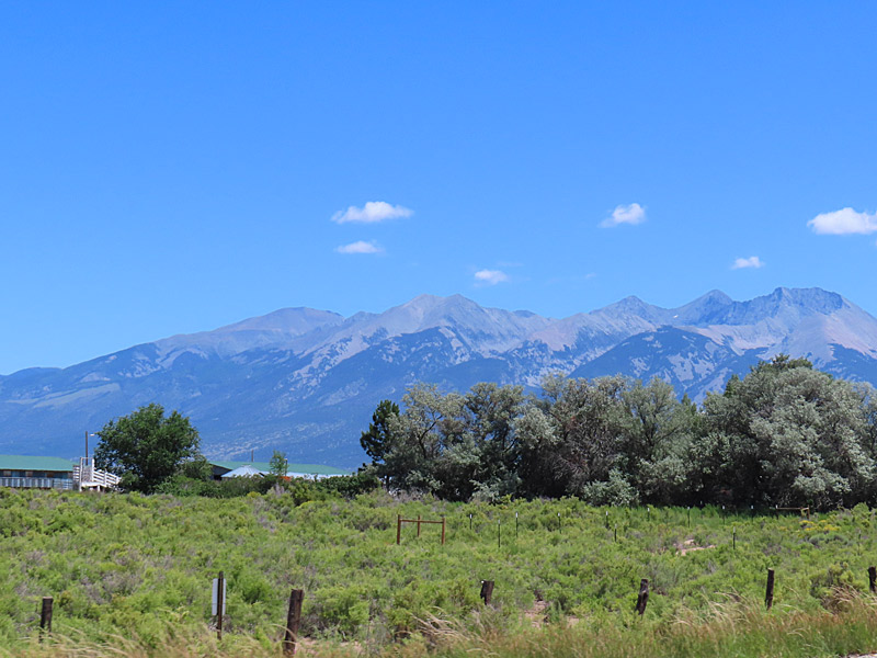 From Leadville, I continued south on Highway 24 and then Highway 285 through central Colorado. Mountain peaks and blue skies with puffy white clouds were constantly part of the view. Every once in a while you would spot a little bit of last winter’s snow still clinging to some of the higher mountains.