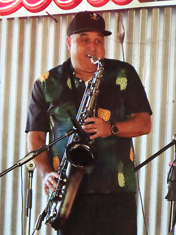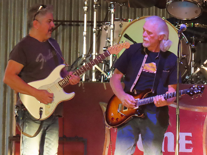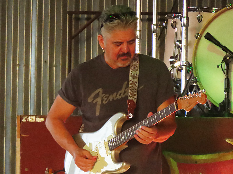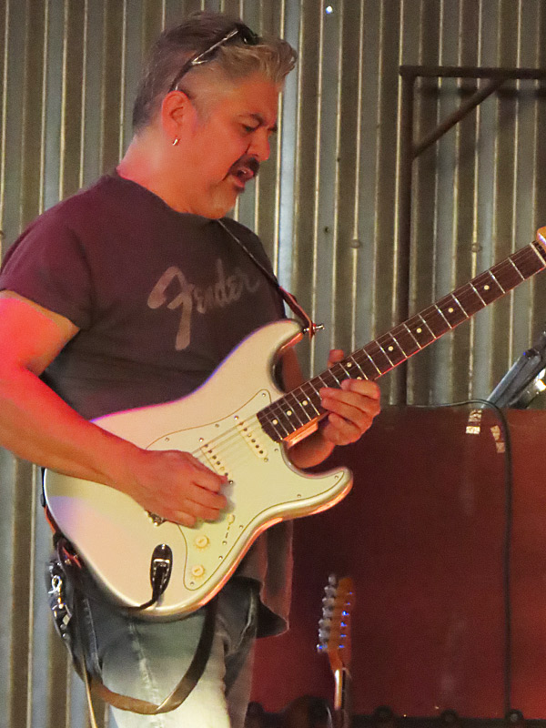 Ruben V and Jimmy Spacek on Saturday night at Texas Pride Barbecue in Adkins, Texas. – photo by Joe AlexanderSan Antonio guitar legends Jimmy Spacek and Ruben V got together with some old friends on Saturday.