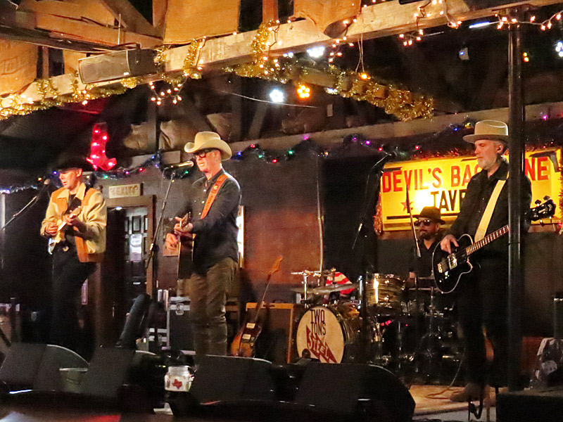 They played an evening show at Texas Pride Barbecue in Adkins, Texas. Shortly after they started, the setting sun beamed onto the stage for a few minutes.