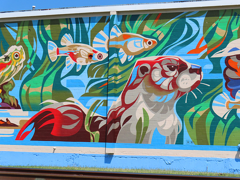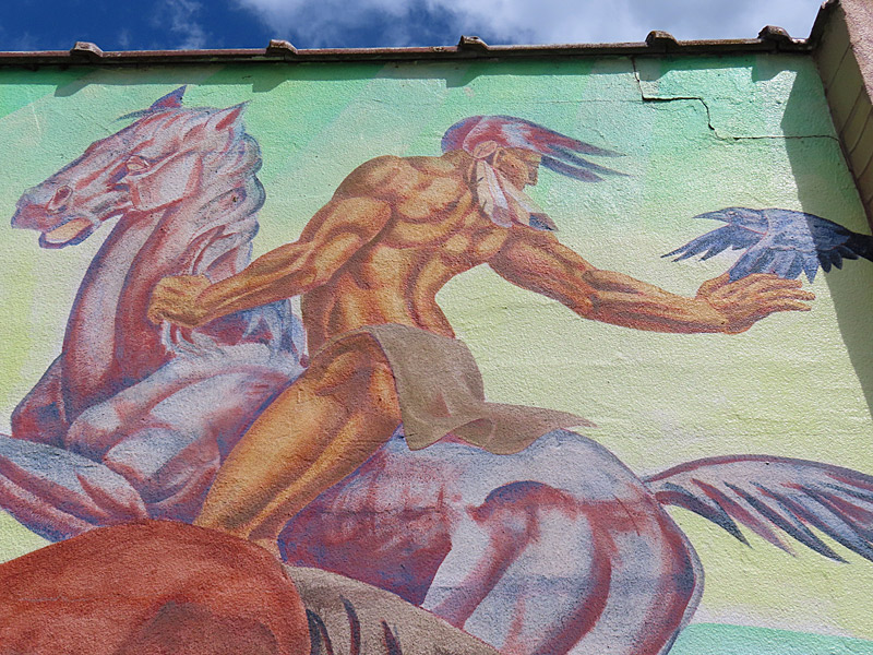 Outdoor mural in downtown Coeur D’Alene, Idaho.I was wandering around Coeur D’Alene, Idaho, after I had walked over to the lakefront and then had lunch at Hudson’s Hamburgers on Sherman Ave.