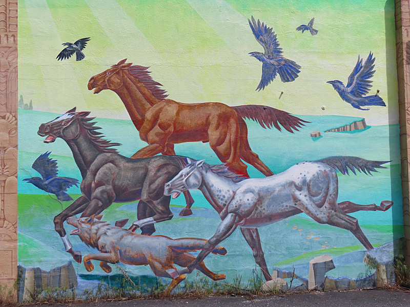 I found this large mural overlooking a parking lot near the corner of 2nd Street and Coeur D’Alene Ave.