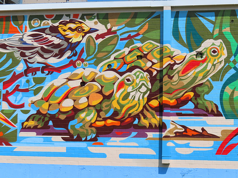 Mural at historic Blackshear Elementary School on 11th Street on the east side of Austin, Texas.I spent part of a recent morning looking for some of the murals and other public art on the east side of Austin, Texas.