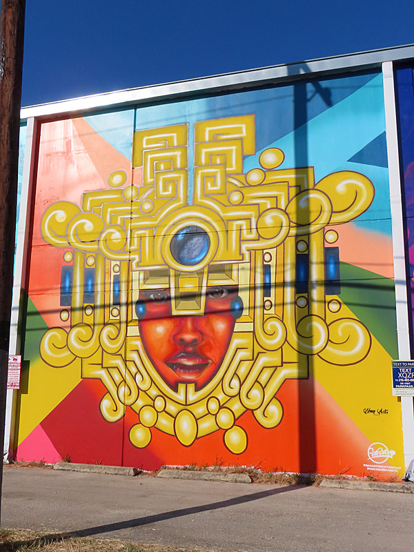 These murals are a short distance north of the Alamodome in the area around Houston Street up to Nolan Street and were created as part of the San Antonio Street Art Initiative.