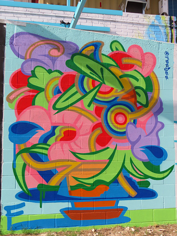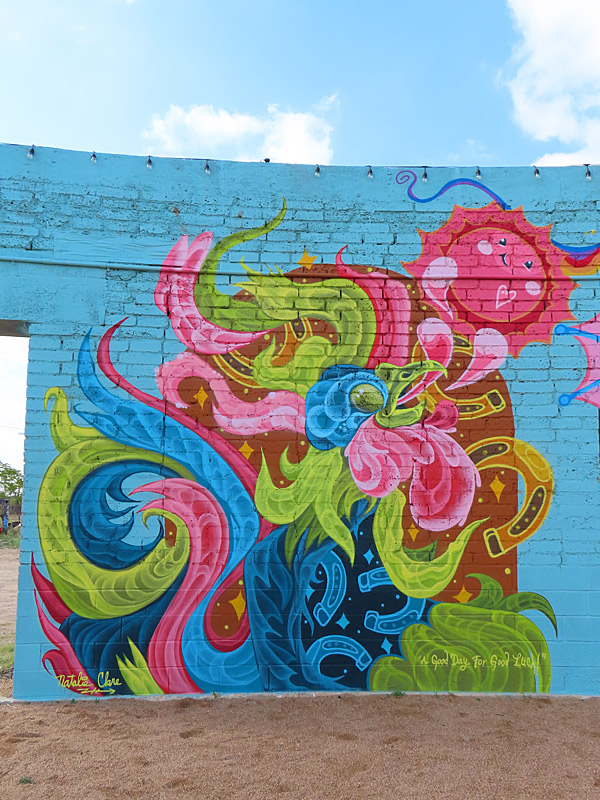 The outdoor mural gallery is located not far from the intersection of Highway 71 and Highway 183. The is well away from downtown Austin and just north of Austin-Bergstrom International Airport.