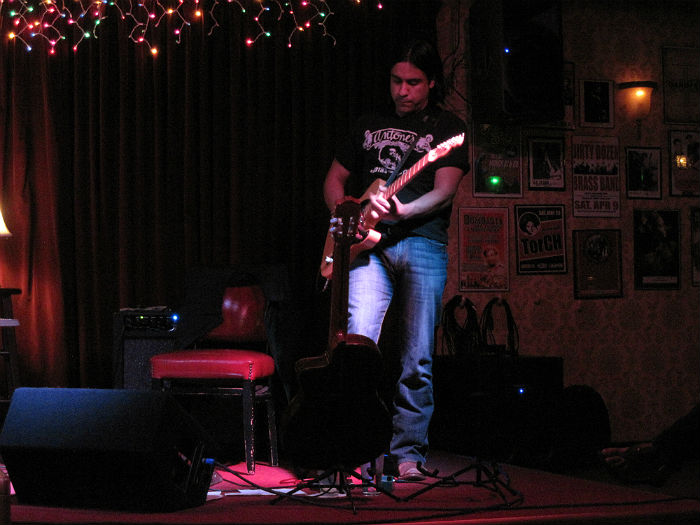 Eric Tessmer and his well worn Stratocaster at Sam’s Burger Joint on Saturday, July 27, 2013. - photo by Joe Alexander