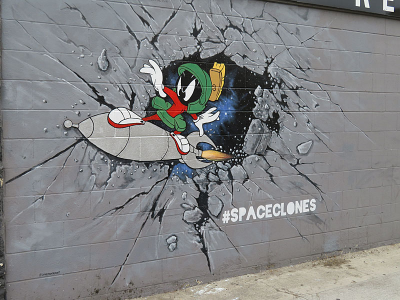 Most of the murals are painted on the infrastructure of a major highway interchange where Interstate 5 meets the road to the Balboa Bridge. Because of that, many of the surfaces are not proper rectangles. It’s interesting to see how the artists work with some odd angles and bridge supports that often are not exactly vertical or horizontal. Some of the murals are even painted on the bottom of the highway – or the ceiling of the park depending on how you look at it.