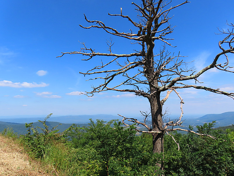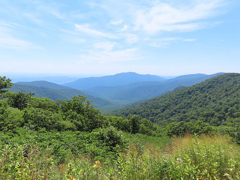 There are a number of overlooks and places to park along Skyline Drive, where the highest elevation is 3,680 feet.